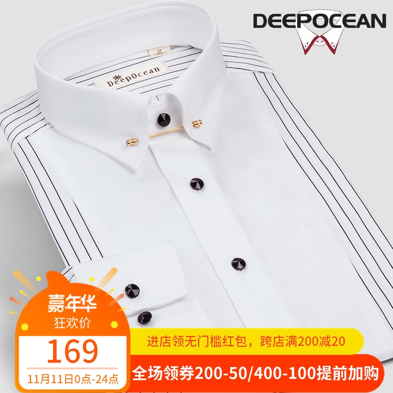 深海新款男長袖襯衫燕子領紳..