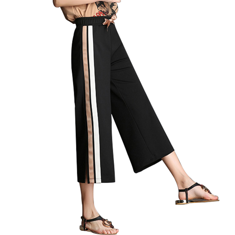 闊腿褲女九分褲高腰韓版學生顯瘦春裝新款百搭條紋寬松褲子夏