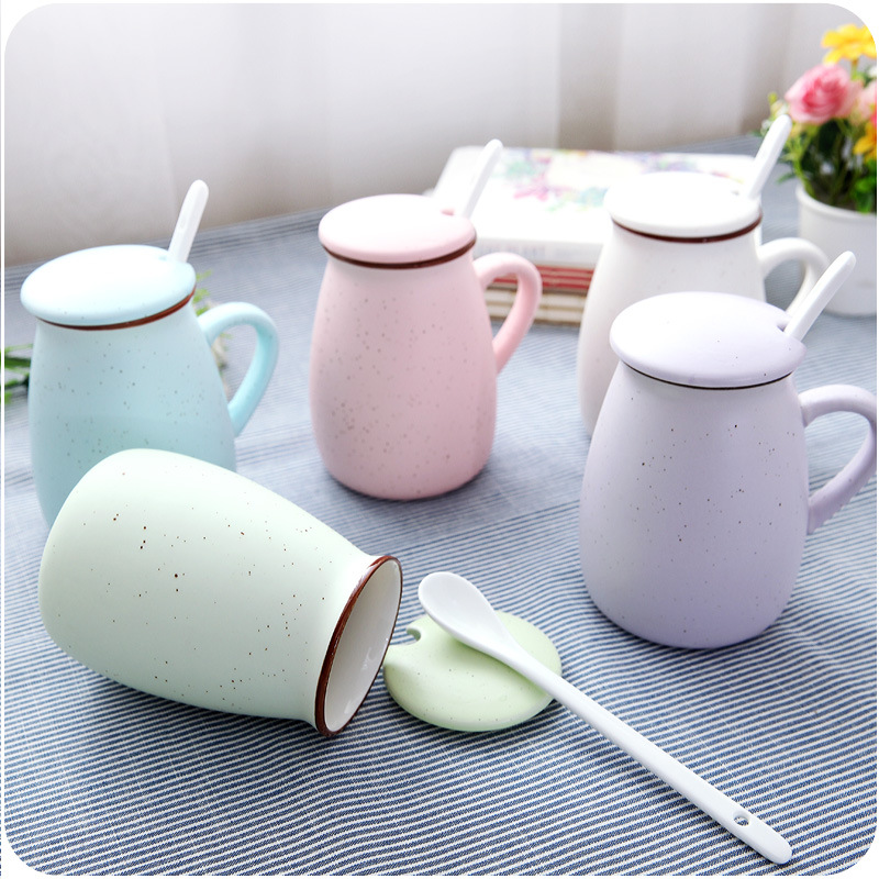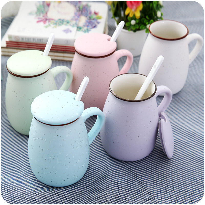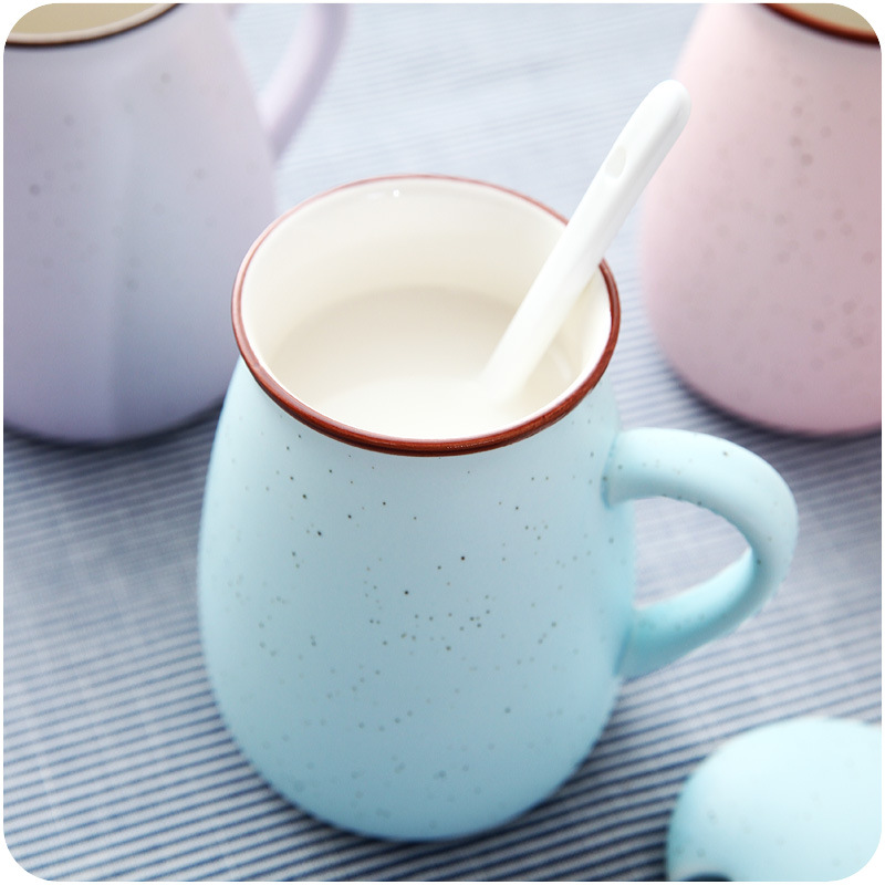 牛奶陶瓷杯子帶蓋勺馬克杯創意復古滿天星情侶茶水杯咖啡杯禮品杯
