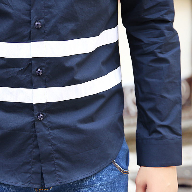秋裝男士襯衫 時尚條紋襯衫男長袖修身 韓版休閑潮流男裝襯衣寸衣