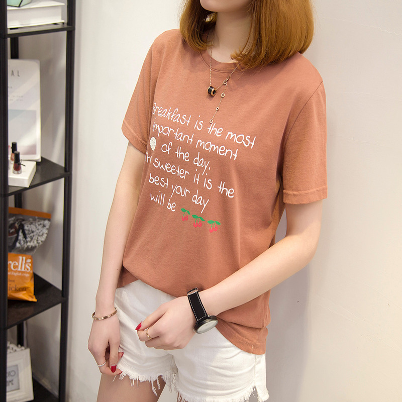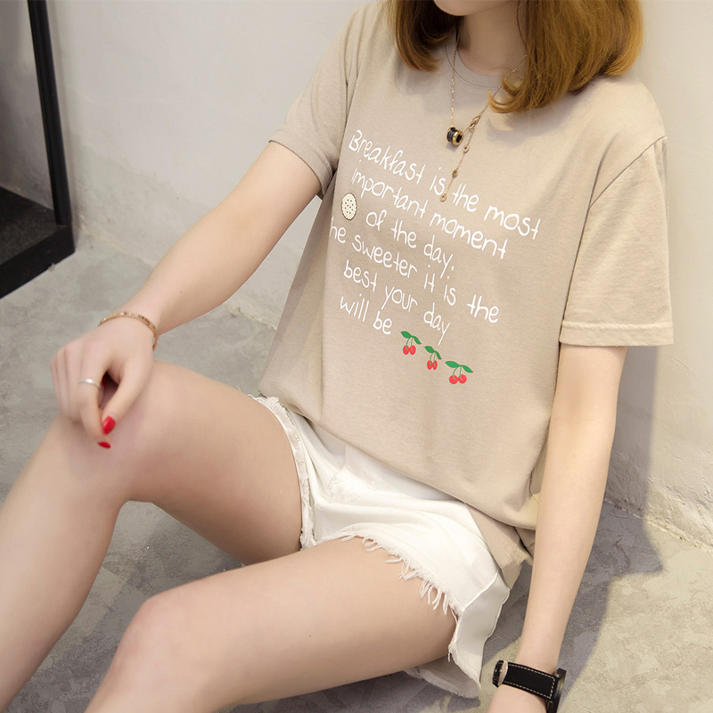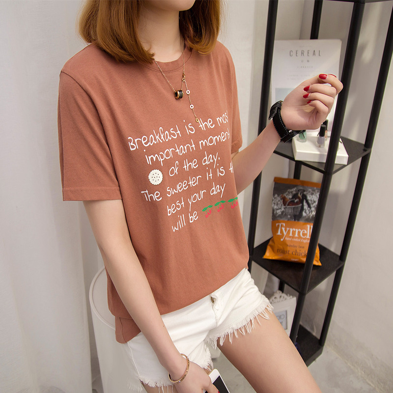 女裝夏裝新款潮寬松短袖t恤女字母休閑打底體恤衫百搭上衣女
