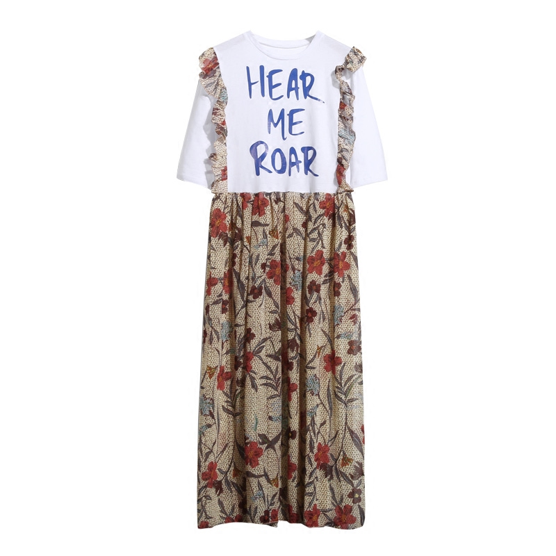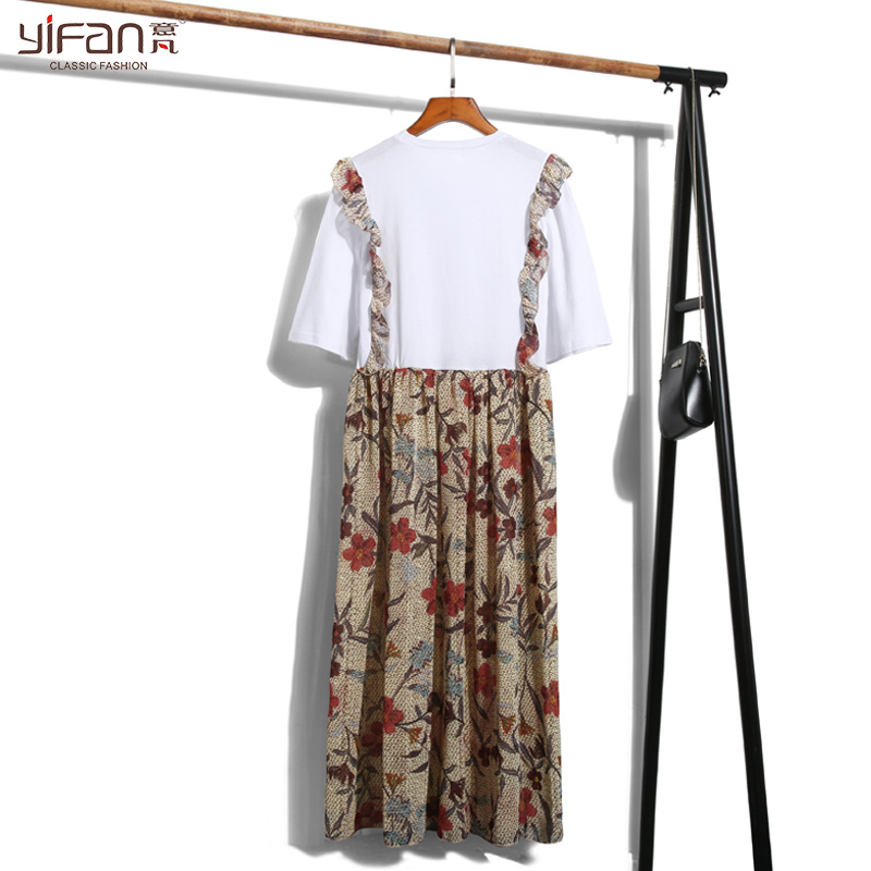 夏季韓版寬松碎花裙荷葉邊長裙T恤假兩件套雪紡吊帶連衣裙女