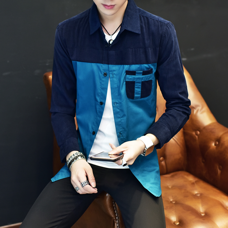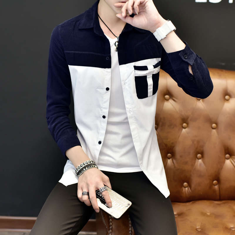 春新款男士長袖襯衫韓版修身青年大碼襯衫男裝休閑襯衣