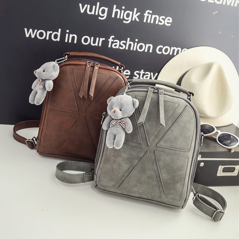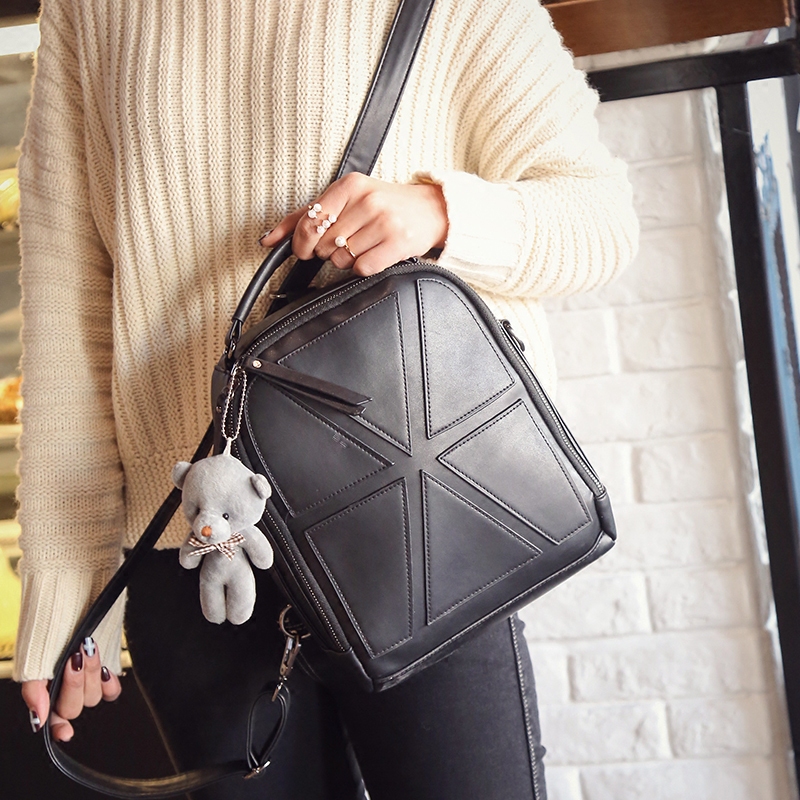 韓版新款拼接雙肩包女時尚兩用學院風背包書包單肩斜跨手提包包潮