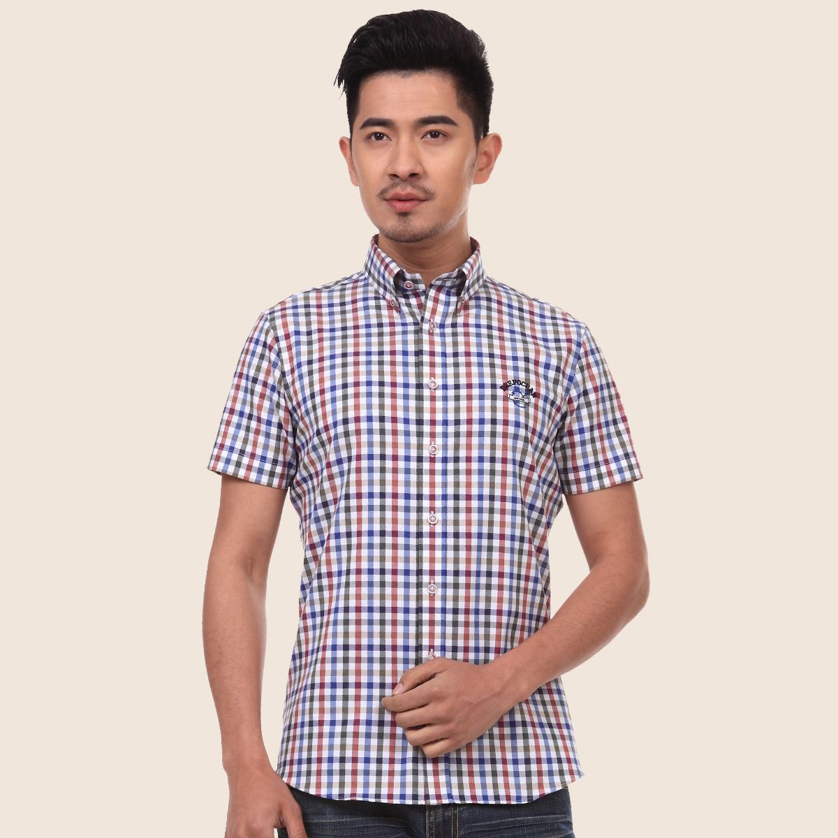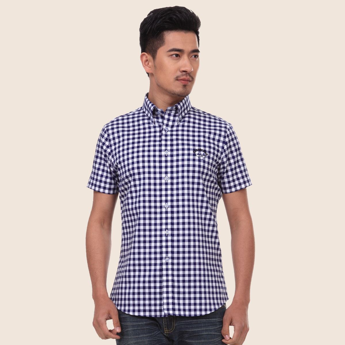 新夏季深海男士短袖襯衫牛津紡格子男裝休閑襯衣純棉免燙韓版