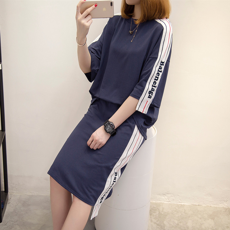 時尚套裝女春裝時尚潮新款兩件套寬松中長袖t恤女夏韓版百搭