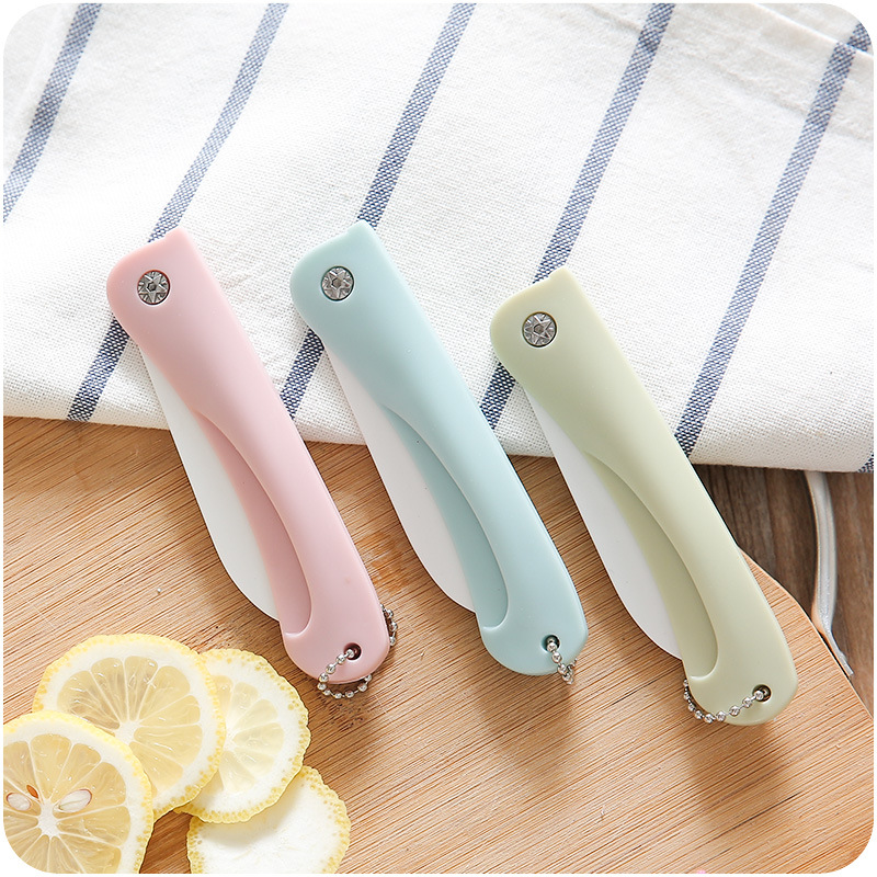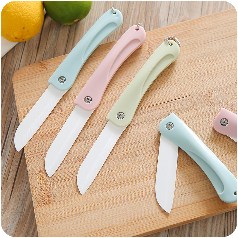 便攜可折疊陶瓷家用水果小刀居家廚房刀具日用旅游弧形刀面帶掛繩