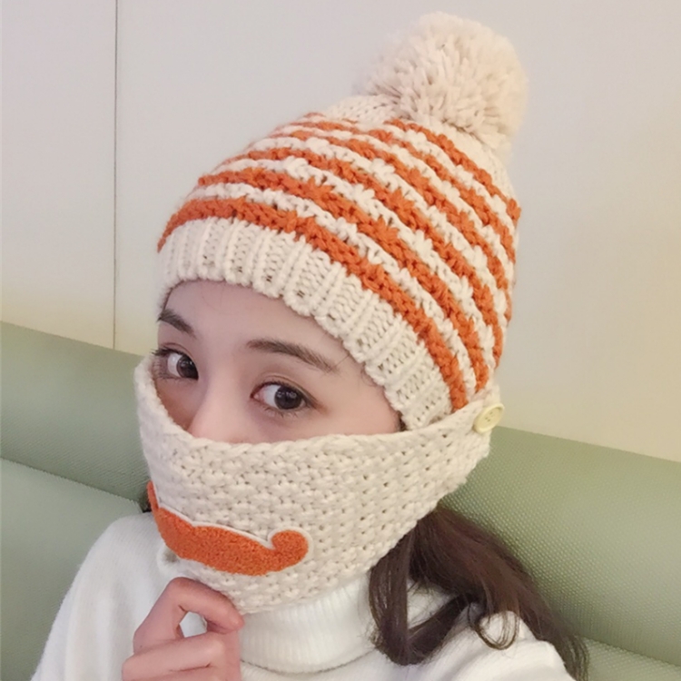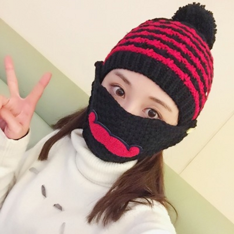 韓國甜美軟妹冬款毛球加絨保暖口罩毛線針織帽女士騎車護耳帽