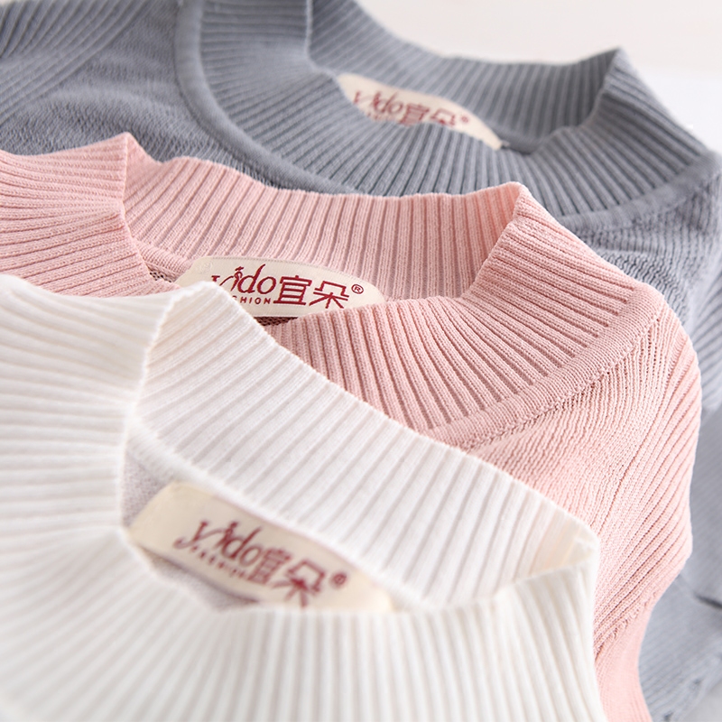 宜朵夏季喇叭袖針織衫上衣女修身套頭七分中袖針織衫T恤女薄短款