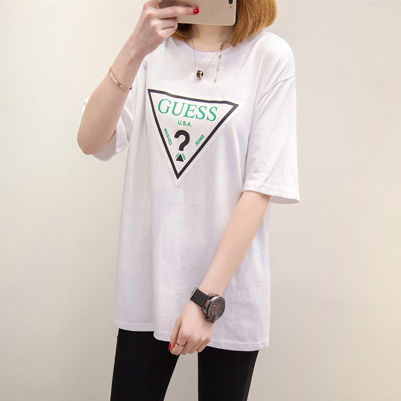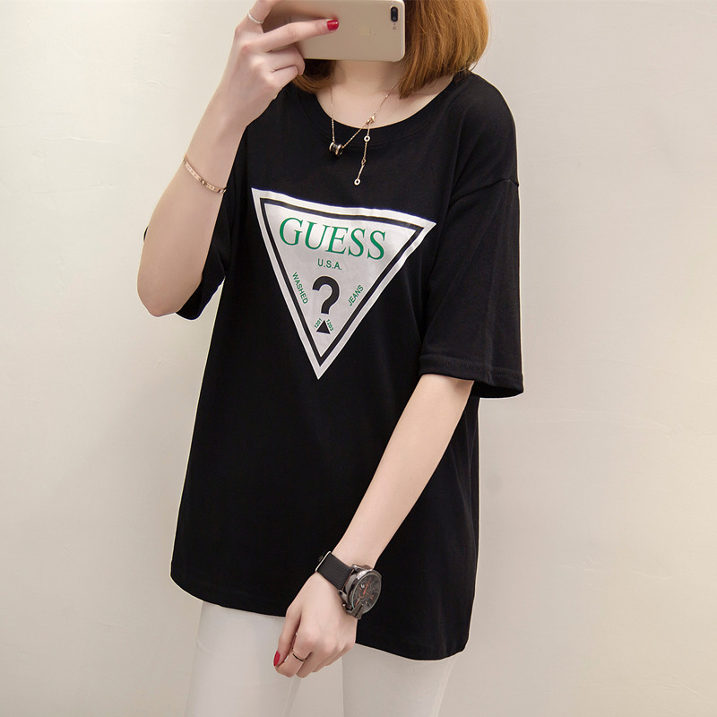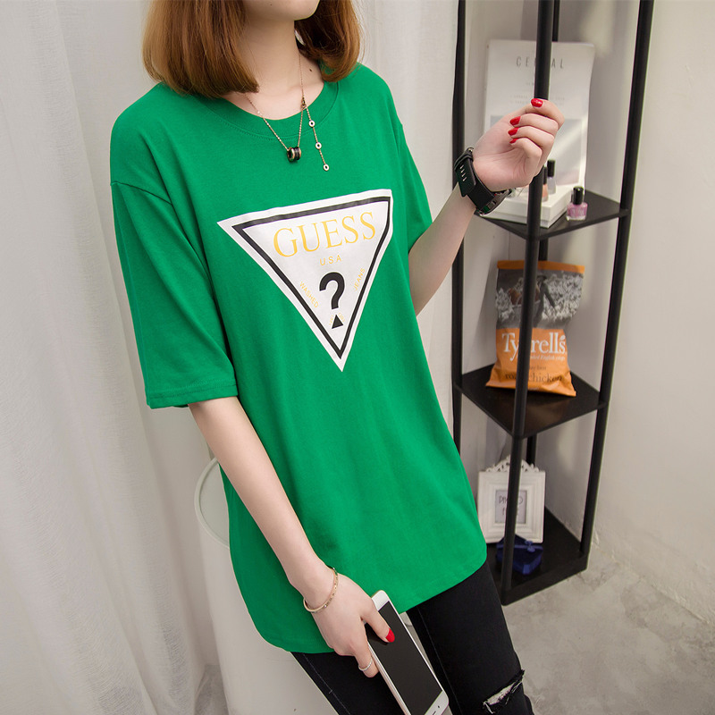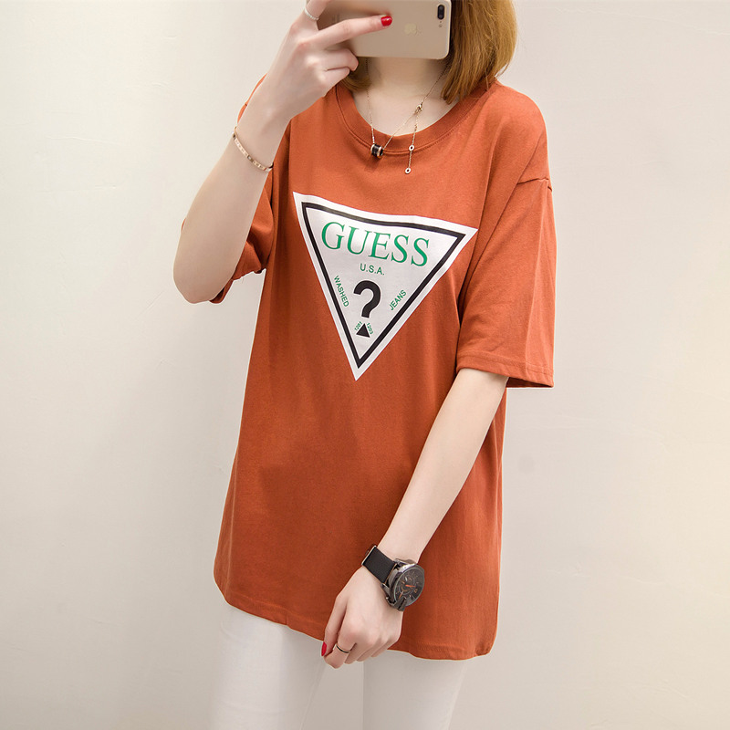 女裝春裝新款潮上衣中長款個性時尚短袖t恤女寬松韓版打底衫