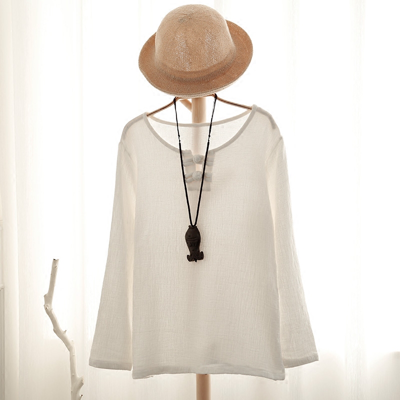 春裝新款女裝純棉上衣中長款打底衫圓領寬松長袖t恤純色休閑