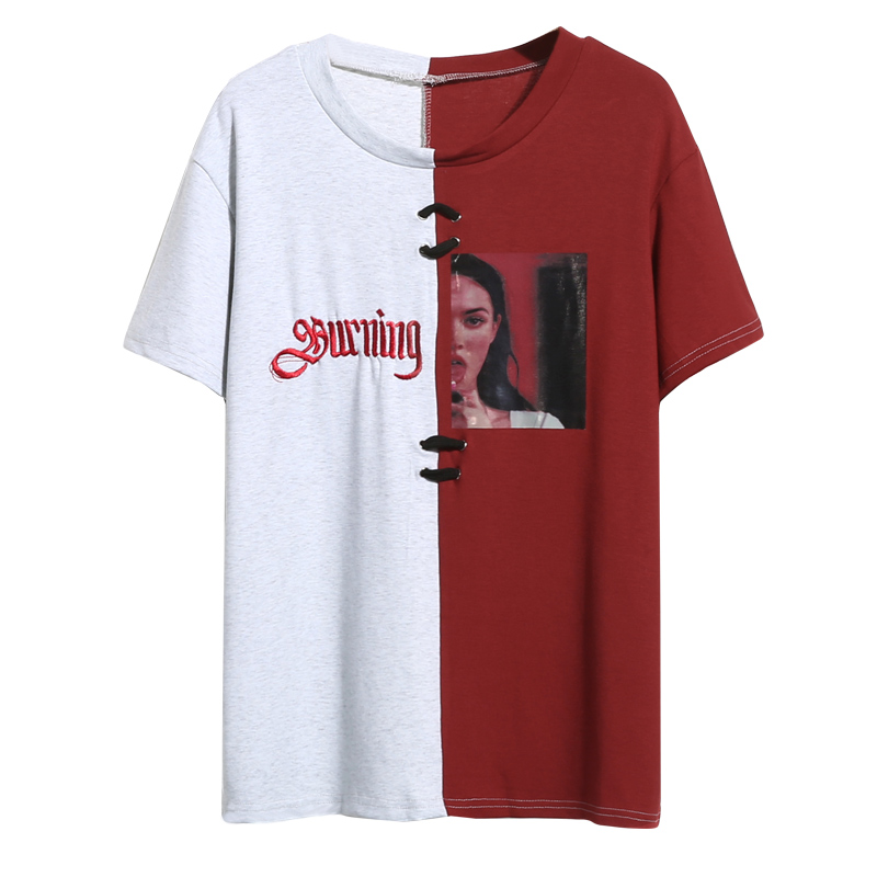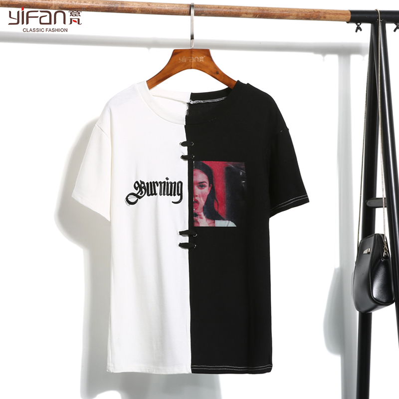 短袖t恤女夏裝時尚印花寬松上衣純棉半袖韓版拼色體恤潮學生