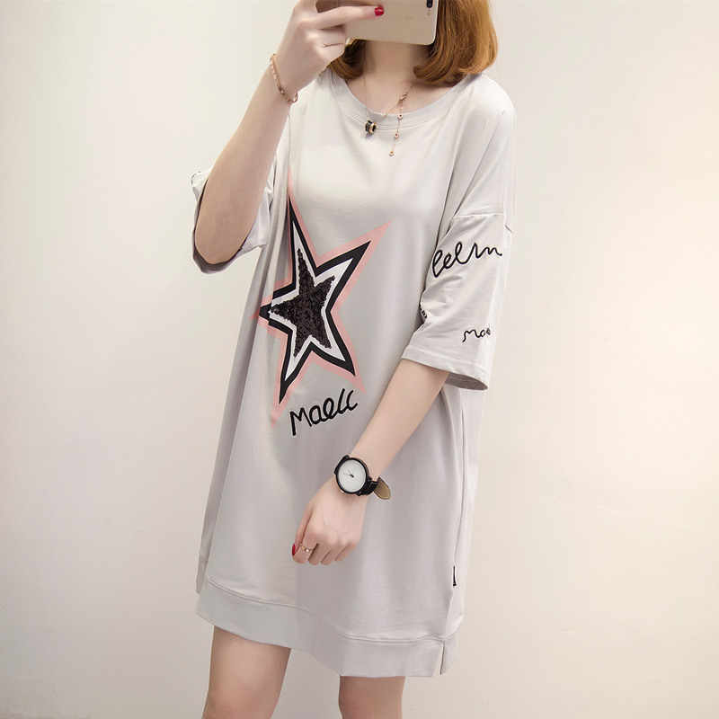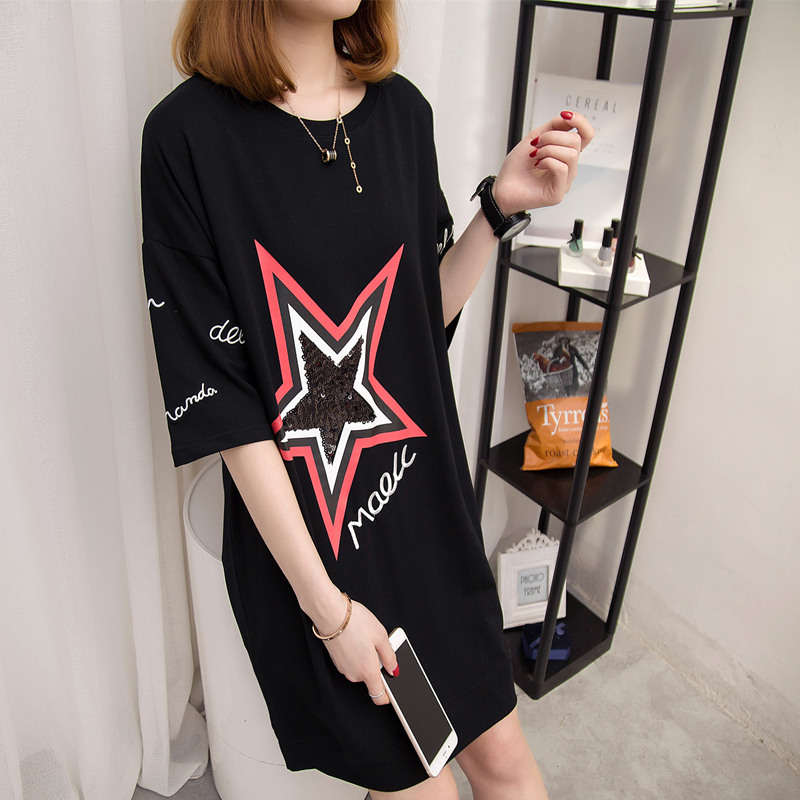 短袖t恤女寬松中長款韓版上衣女夏裝新款女裝亮片體恤百搭潮