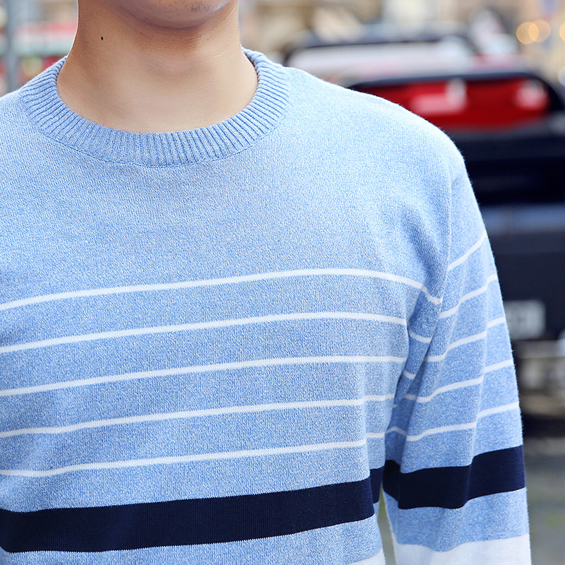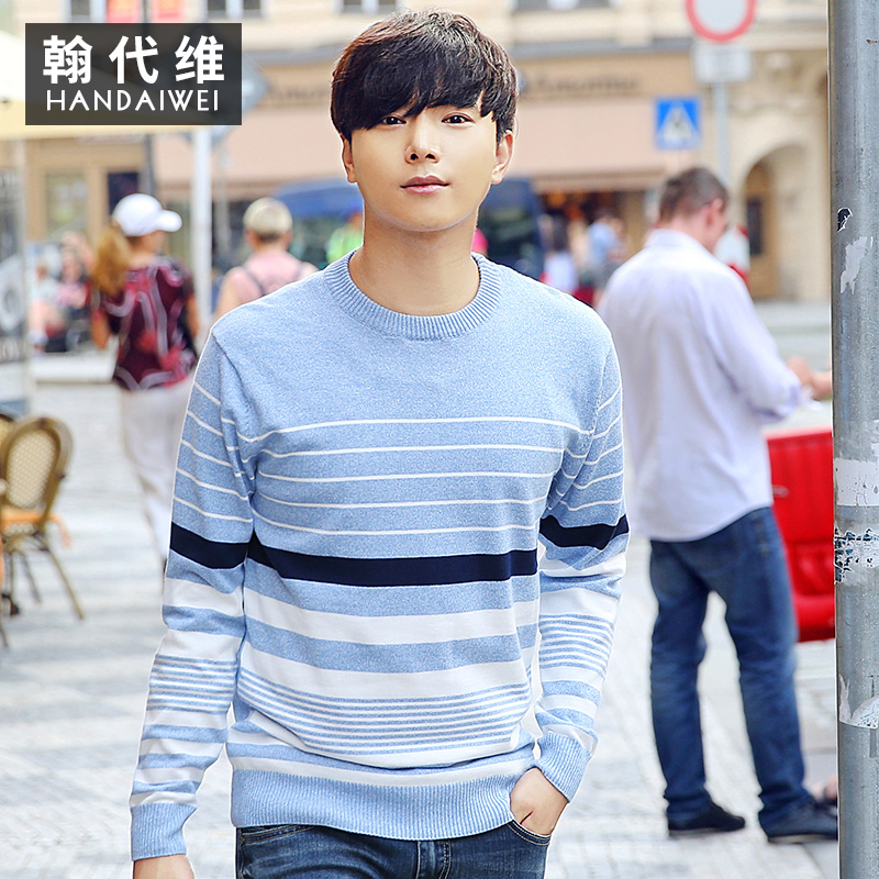 秋裝男士毛衣 圓領套頭條紋針織衫毛衣男韓版學生長袖線衣潮男裝