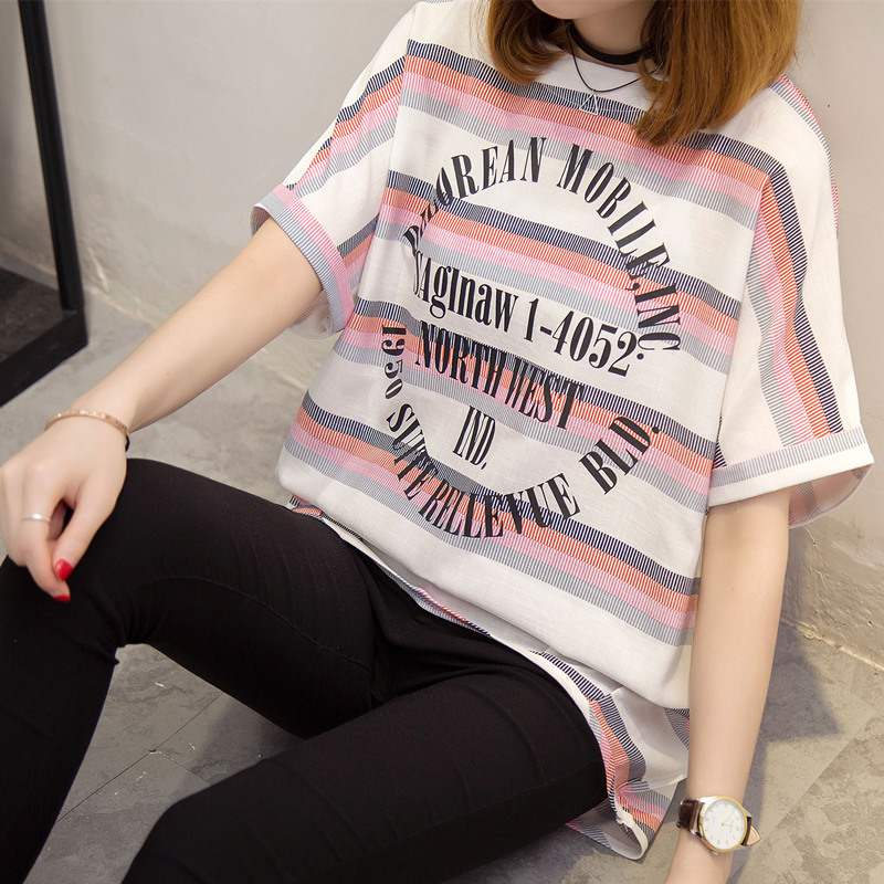 短袖上衣女夏新款條紋t恤女韓版學生小清新bf風體恤衫女百搭