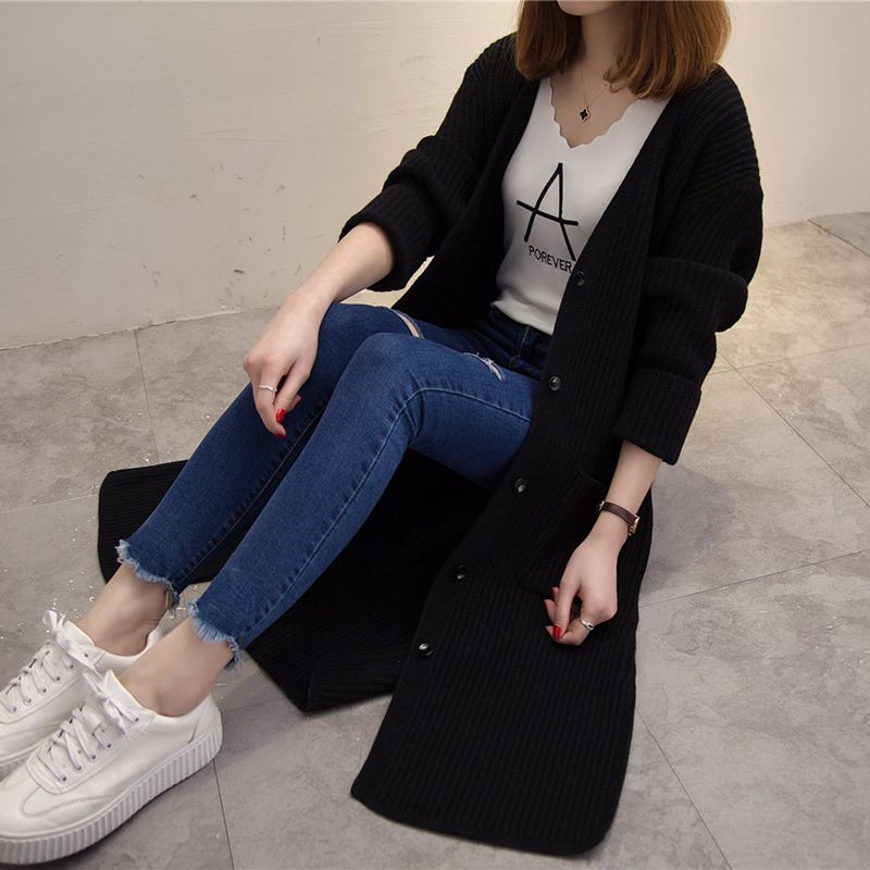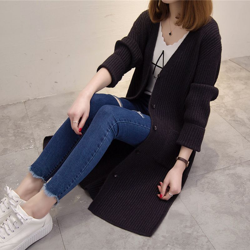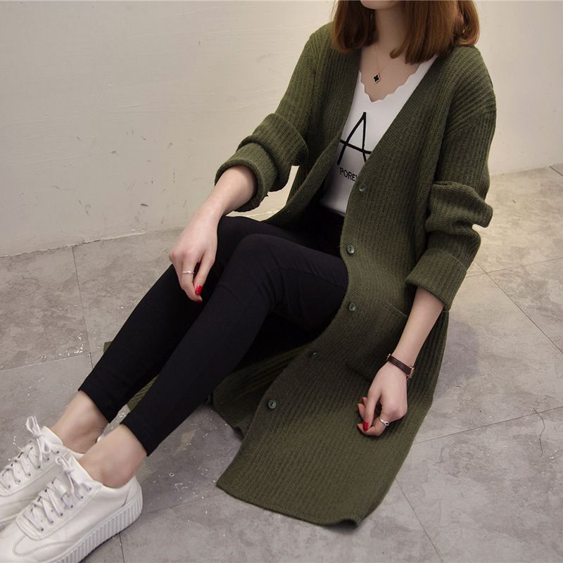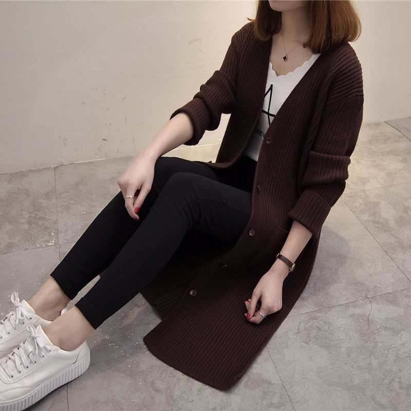 女裝冬裝新款潮韓版純色開衫毛衣針織衫女秋冬中長款長袖外套