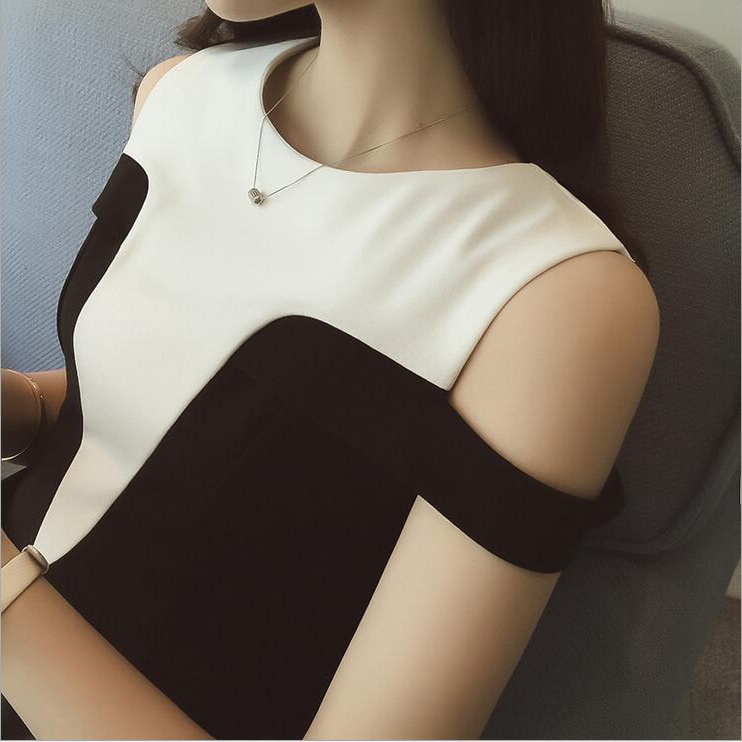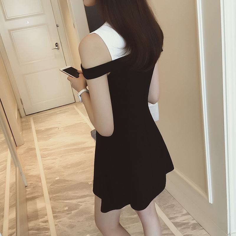 連衣裙女夏季新款黑白拼接中長款修身顯瘦無袖露肩a字裙韓版