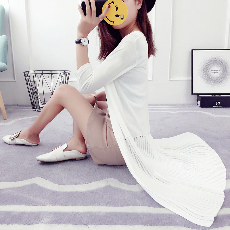 冰麻針織衫新款開衫女防曬衫中長款夏季薄款七分袖外套空調衫