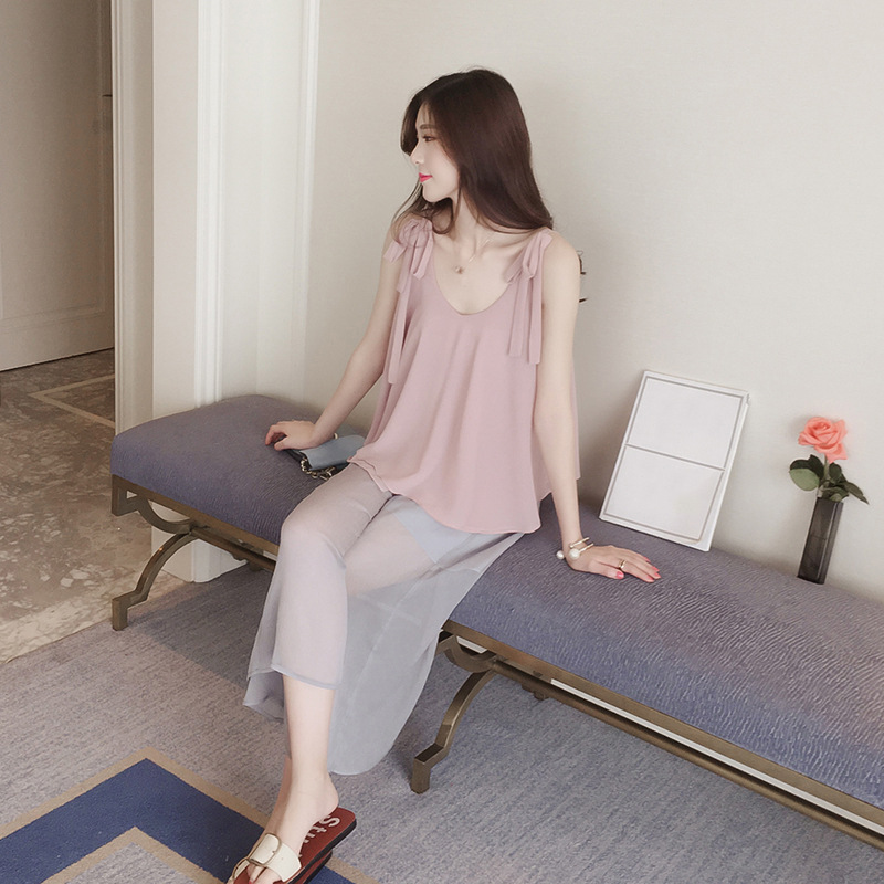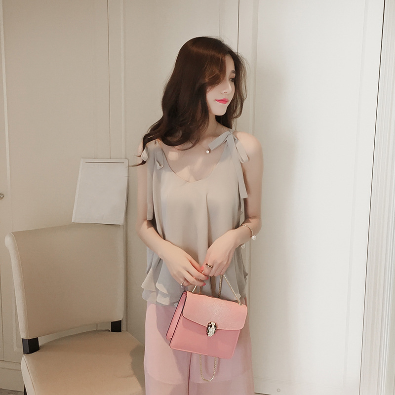 夏季吊帶無袖寬松荷葉邊雪紡上衣新款女學生內搭顯瘦系帶背心小衫