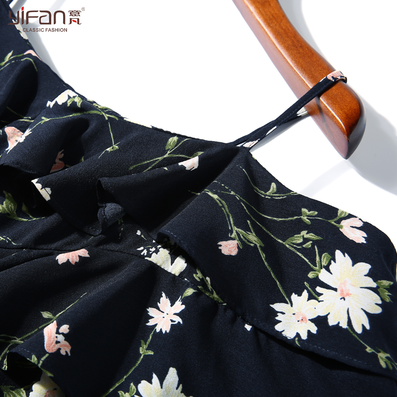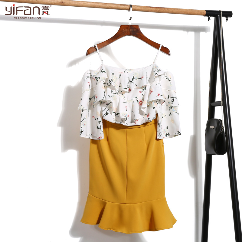雪紡衫短袖夏季新款甜美荷葉邊吊帶一字肩露肩顯瘦碎花上衣女