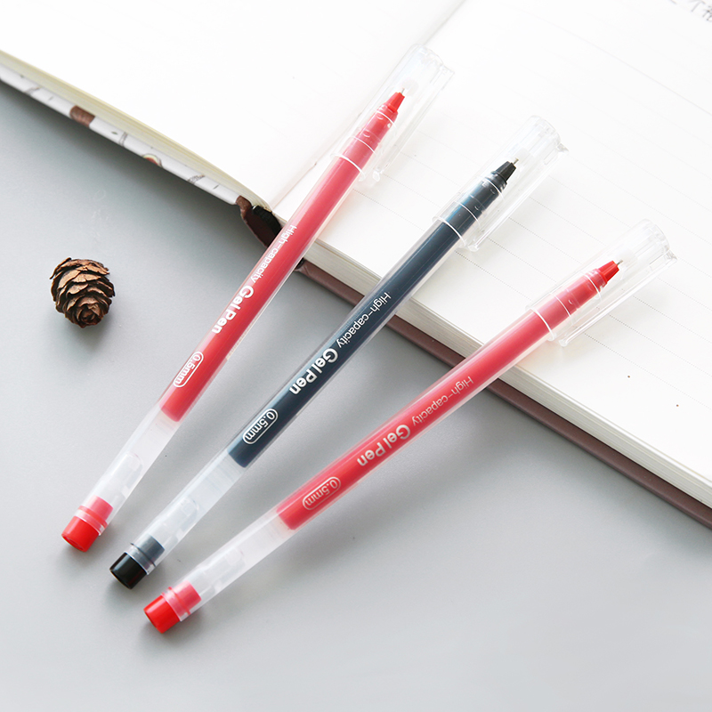 云木雜貨 透明容量中性筆黑色紅色0.5全針管水筆簽字筆黑筆紅筆