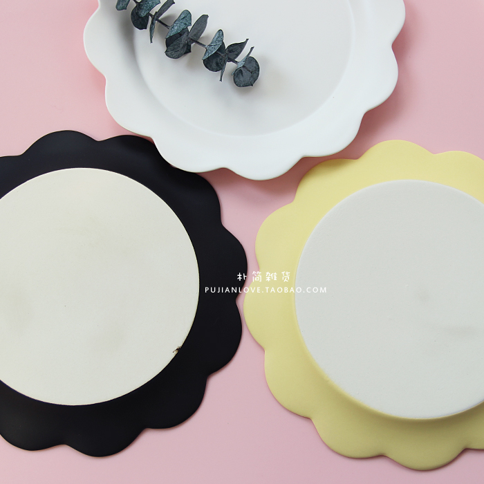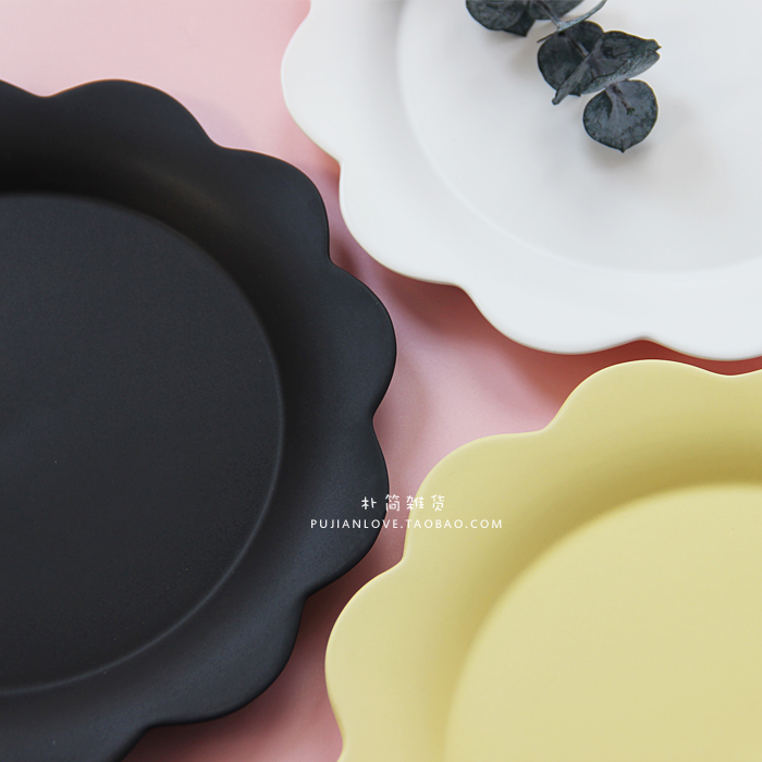 樸簡 日式純色花邊啞光磨砂8寸陶瓷餐具盤子 早餐碟拍攝道具