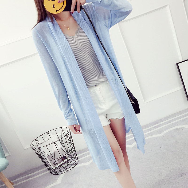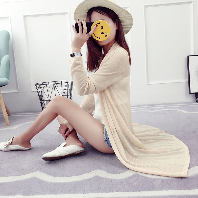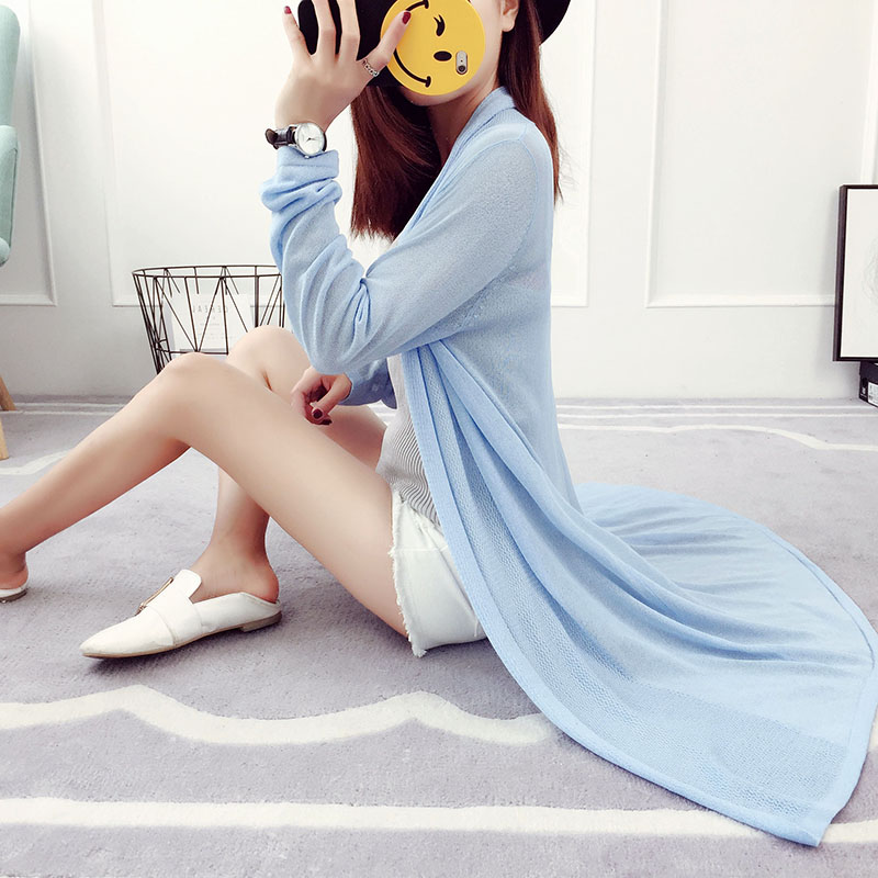 針織衫女開衫薄款外搭中長款鏤空罩衫披肩夏季百搭外套寬松空調衫