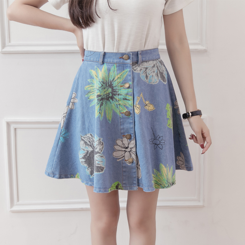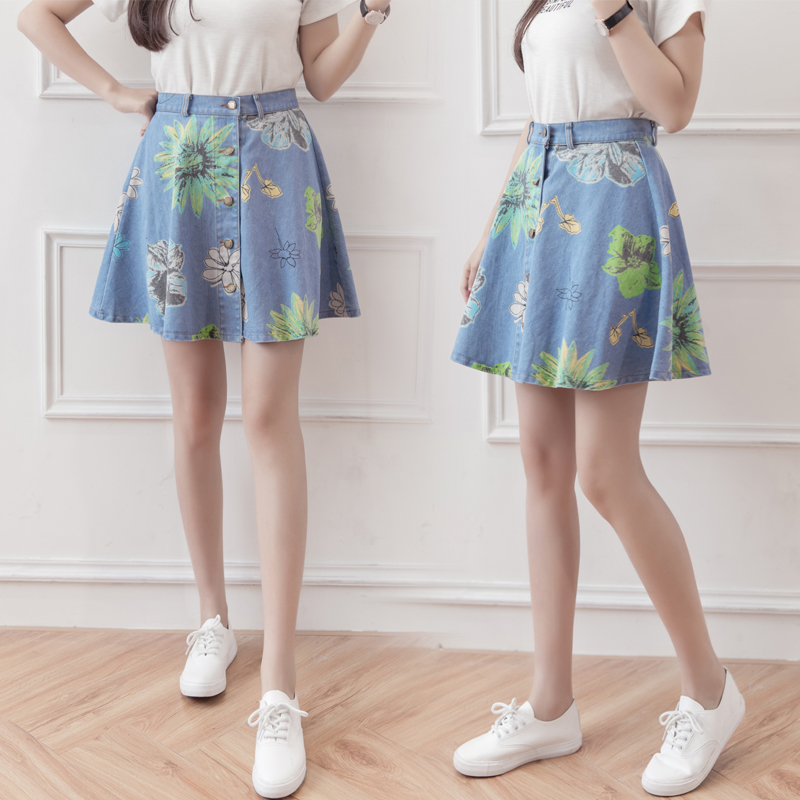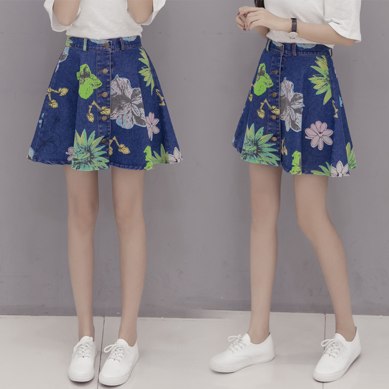 韓版高腰繡花牛仔裙半身裙女刺繡短裙A字裙包臀半裙花朵蓬蓬裙夏