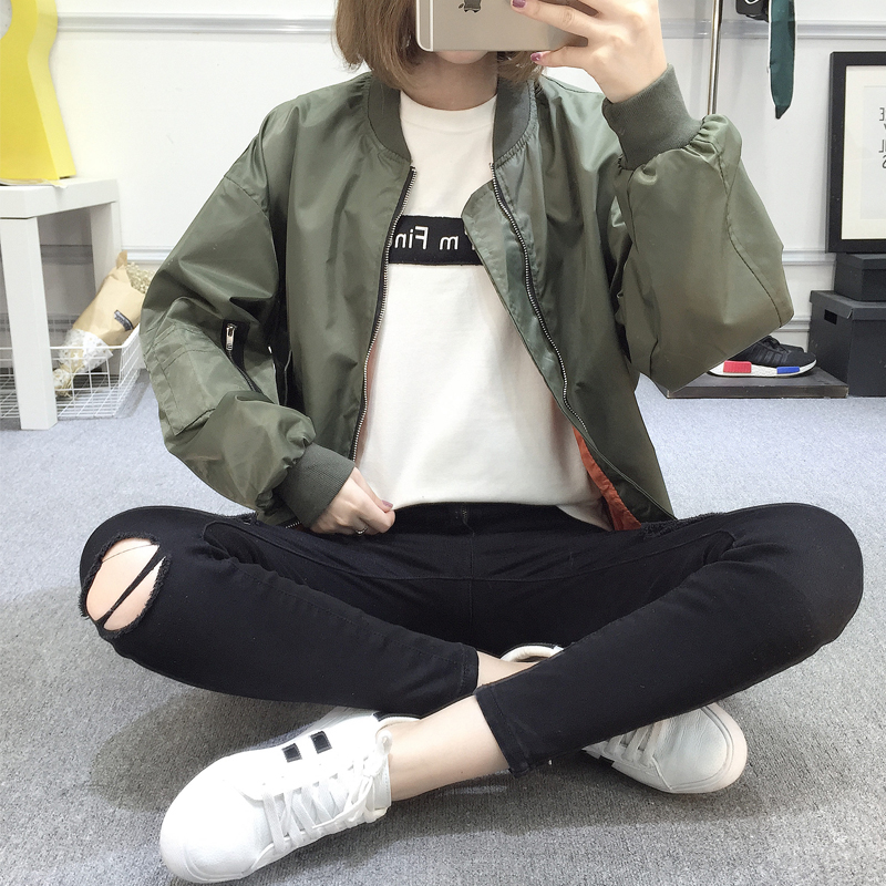 春秋新款韓版bf原宿風寬松百搭彩帶情侶夾克學生休閑棒球服外套女
