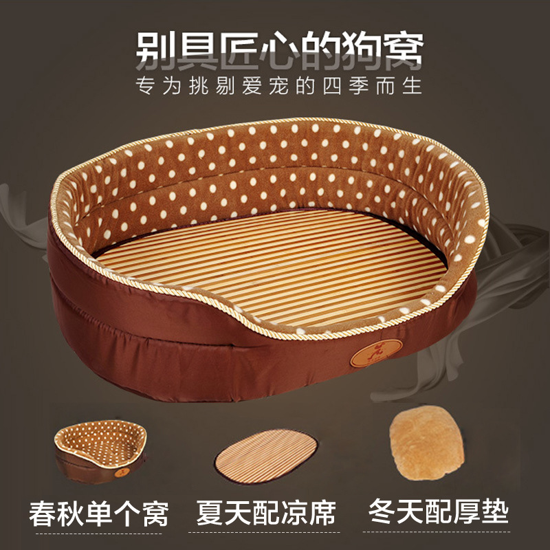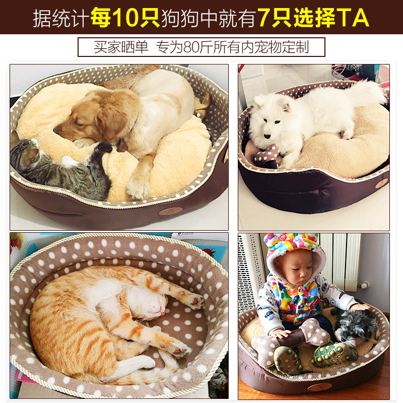 狗窩 咖啡波點寵物窩 兩面用寵物床 泰迪金毛春秋狗窩