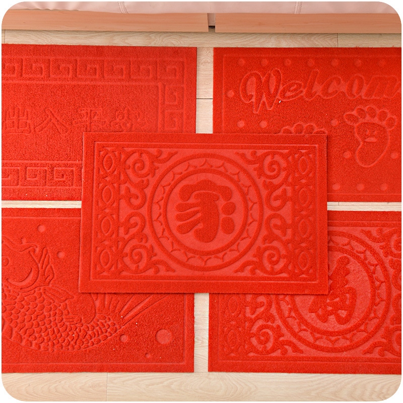 加厚防滑出入平安進門地墊福地毯墊家用喜慶紅色腳墊立體印花防水