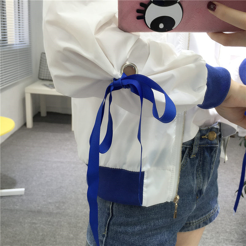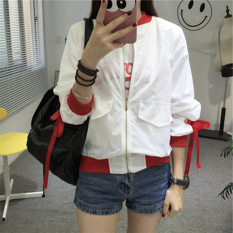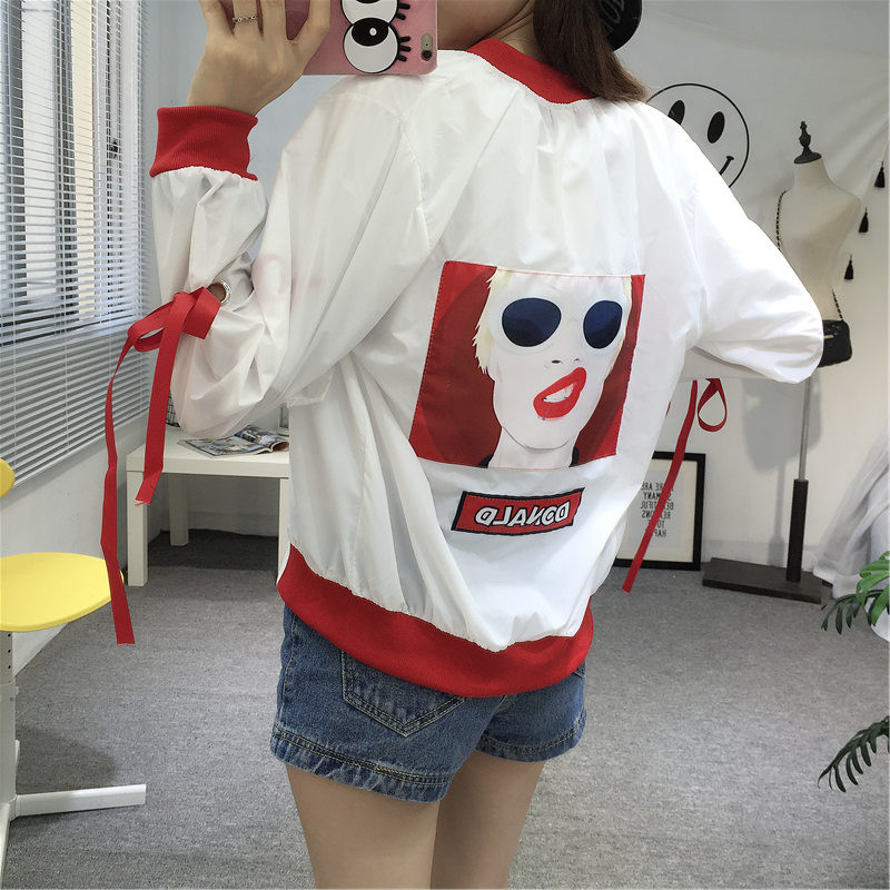 2017新款寬松休閑袖綁帶防曬衣原宿風印花短款棒球服外套男女情侶