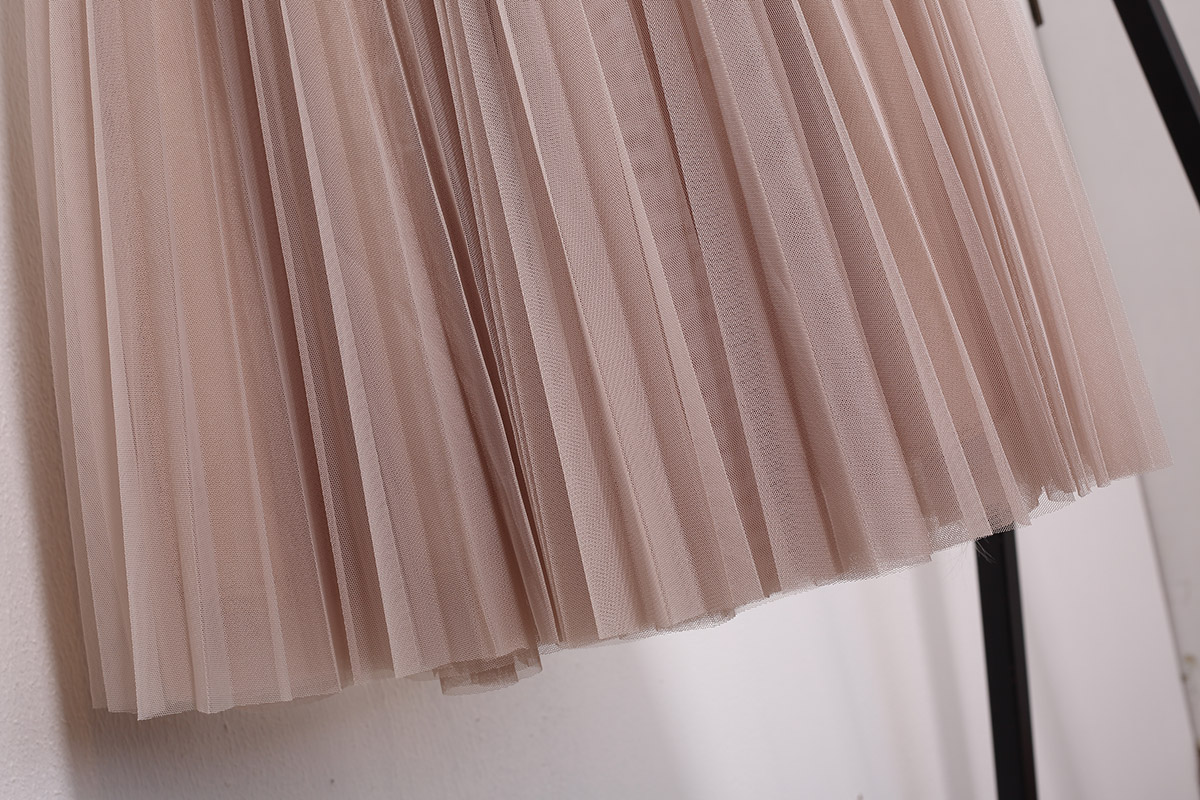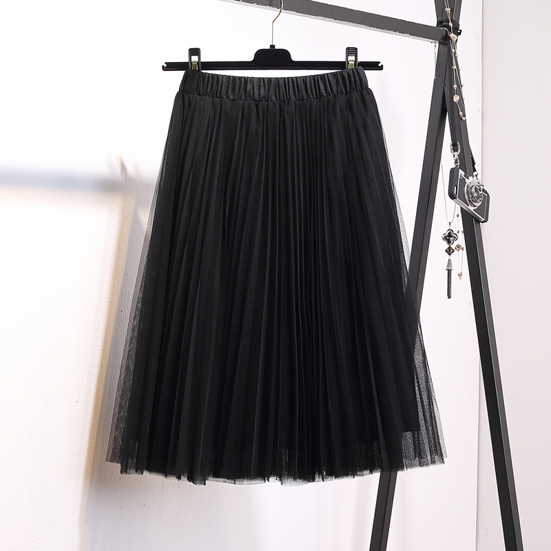中長款網紗裙春夏季新款韓版女高腰百搭雪紡百褶蓬蓬半身裙子