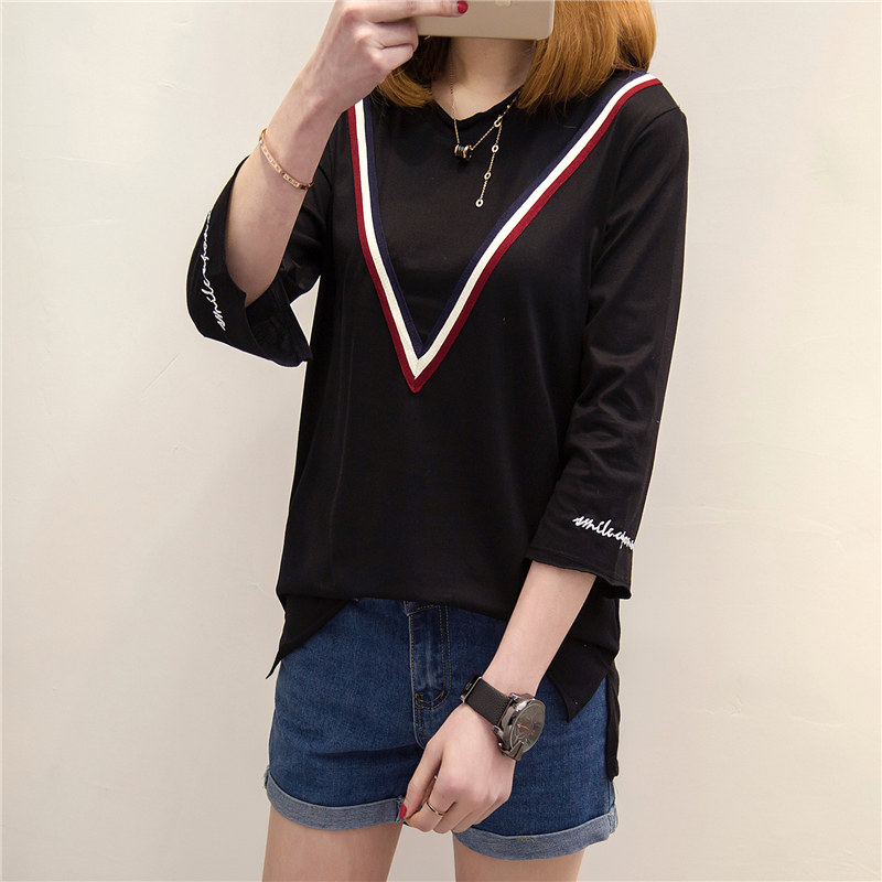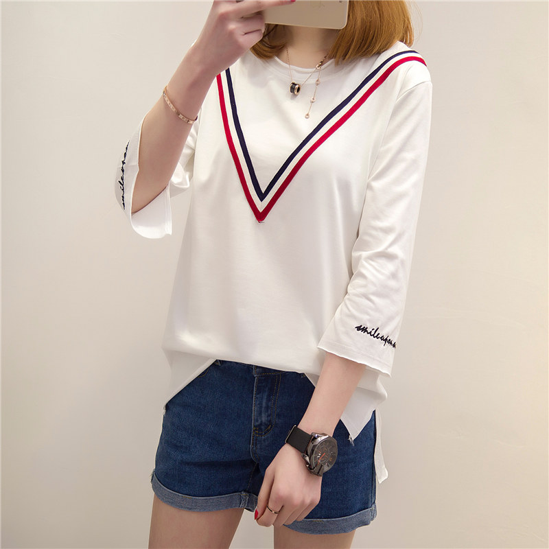 韓版寬松t恤中長袖小衫夏裝七分袖體恤女裝新款女夏學生上衣