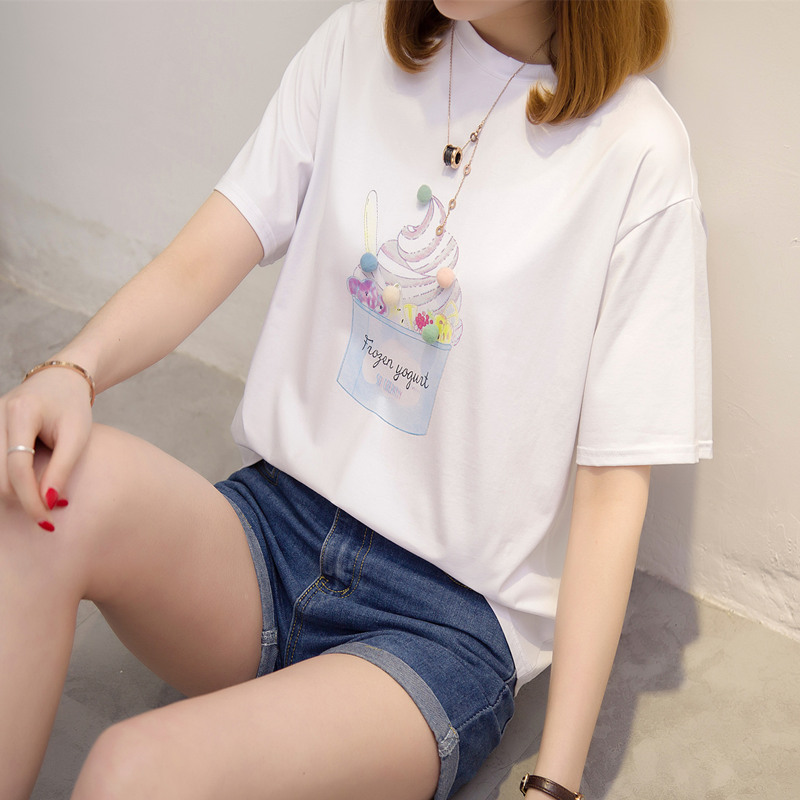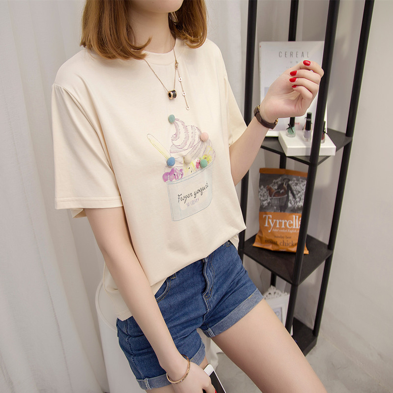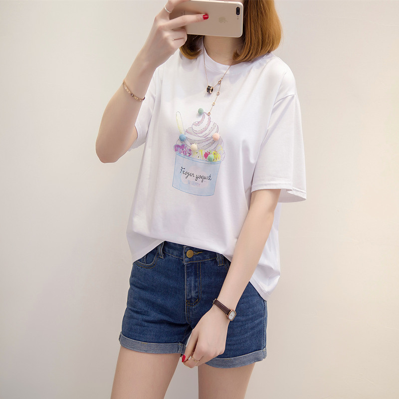 短袖t恤女新款韓版上衣女百搭寬松型學生打底體恤衫夏季女裝