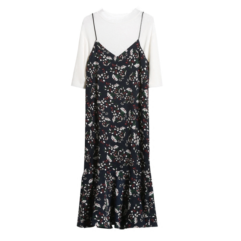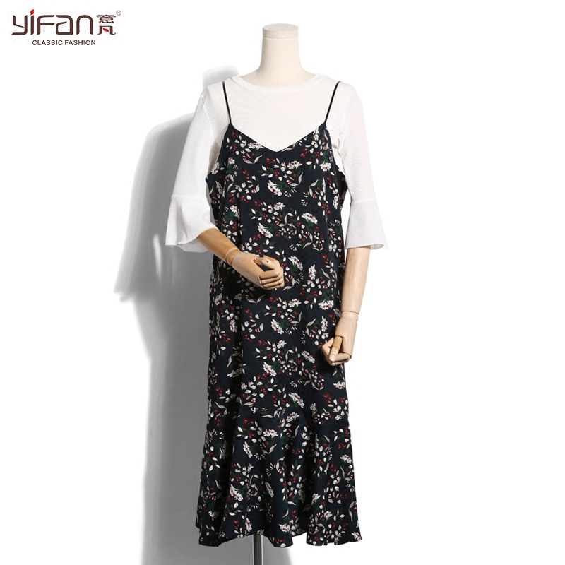 夏季新款韓版中長款碎花吊帶裙雪紡連衣裙女V領印花打底吊帶