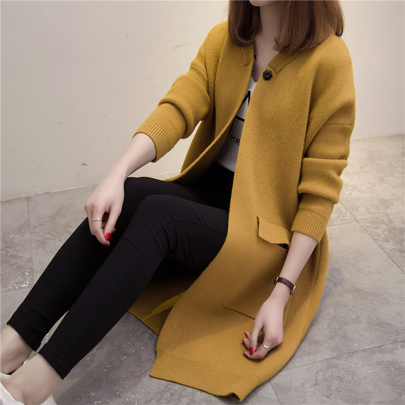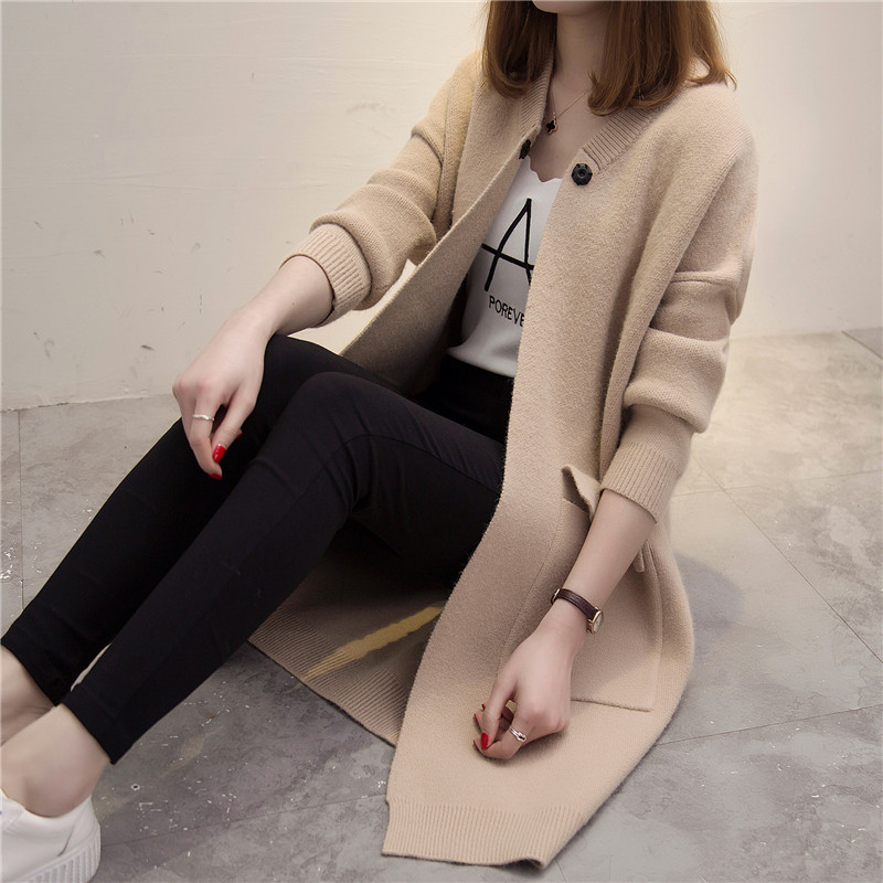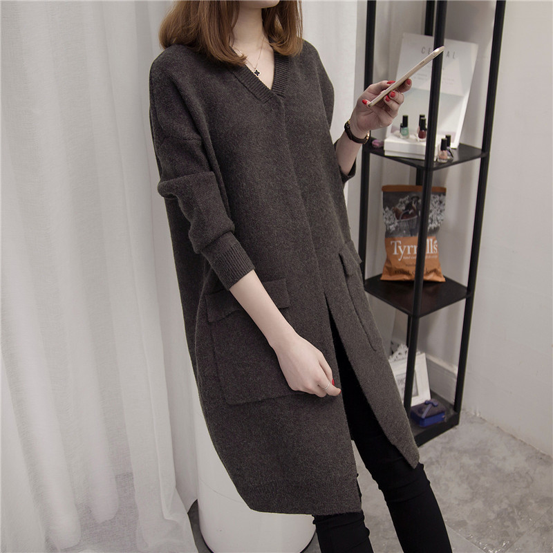 冬季女裝開衫上衣女寬松純色加厚打底衫中長款長袖外套韓版新款潮