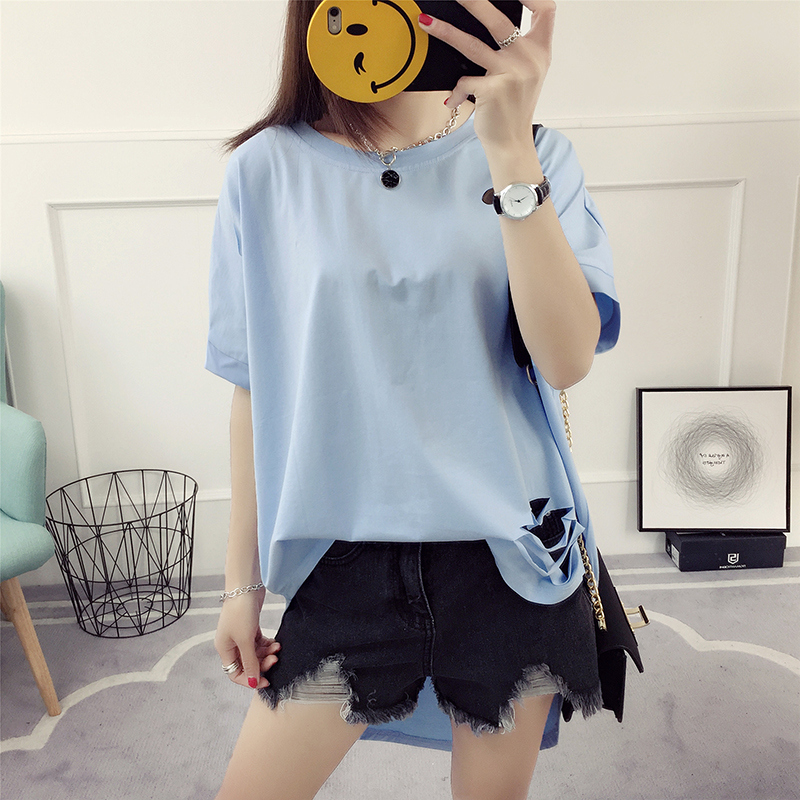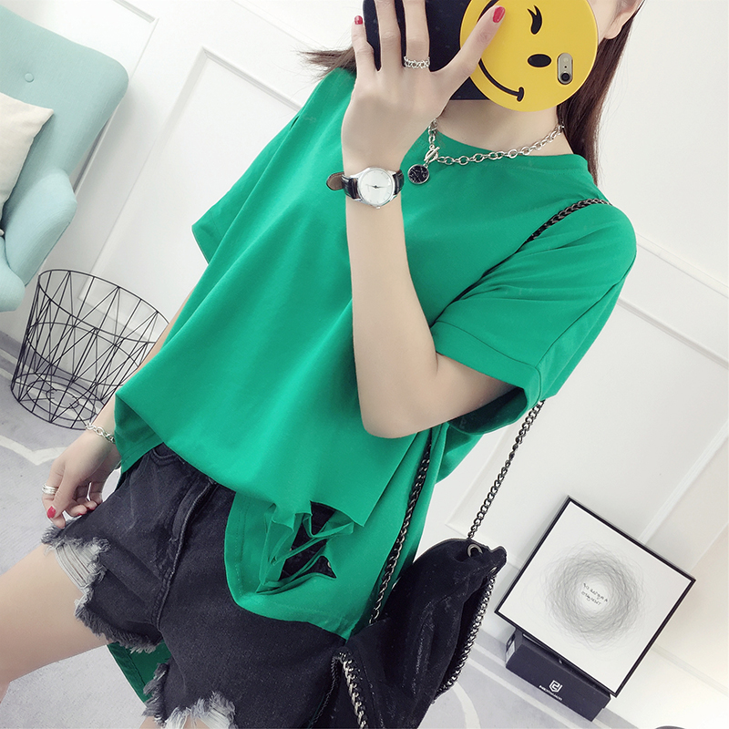 破洞短袖t恤女春裝新款潮春季韓版百搭學生寬松半截袖衣服夏