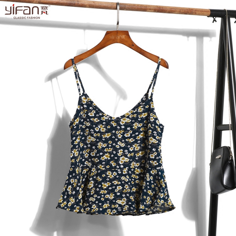 春夏韓版新款復古風雪紡碎花短款V領打底寬松百搭吊帶背心上衣女