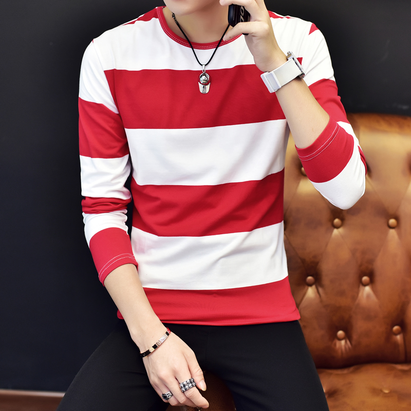2017新款長袖t恤圓領秋季修身打底衫韓版潮男 大碼男