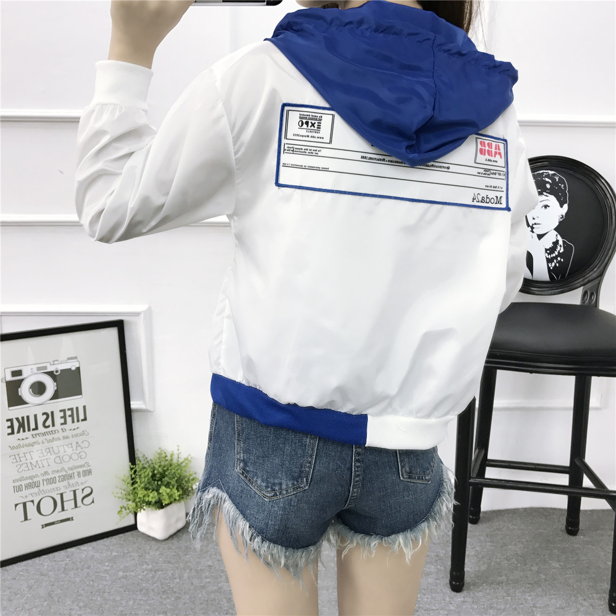 2017春秋薄款少女拉鏈開衫夏天連帽防曬衣初中高中學生短款外套女