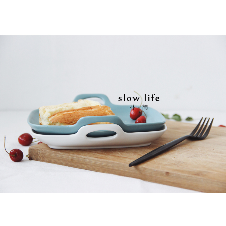 樸簡 純色啞光陶瓷餐盤西餐牛排盤 日式餐具菜盤子雙耳沙拉水果盤