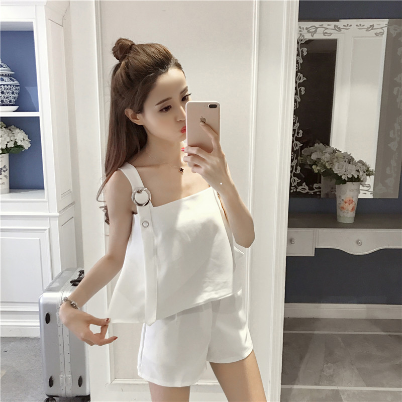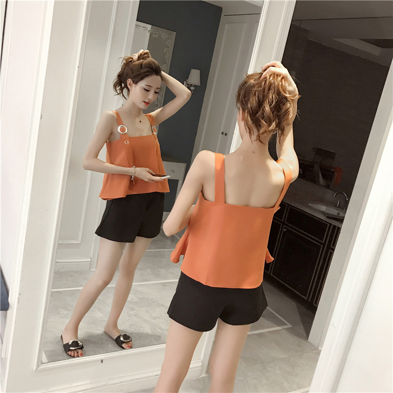 夏季新款女裝韓版小香風吊帶背心兩件套休閑高腰闊腿短褲套裝
