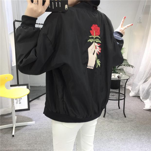 原宿bf風情侶刺繡棒球服外套女春秋韓版學生寬松中長款百搭潮薄款
