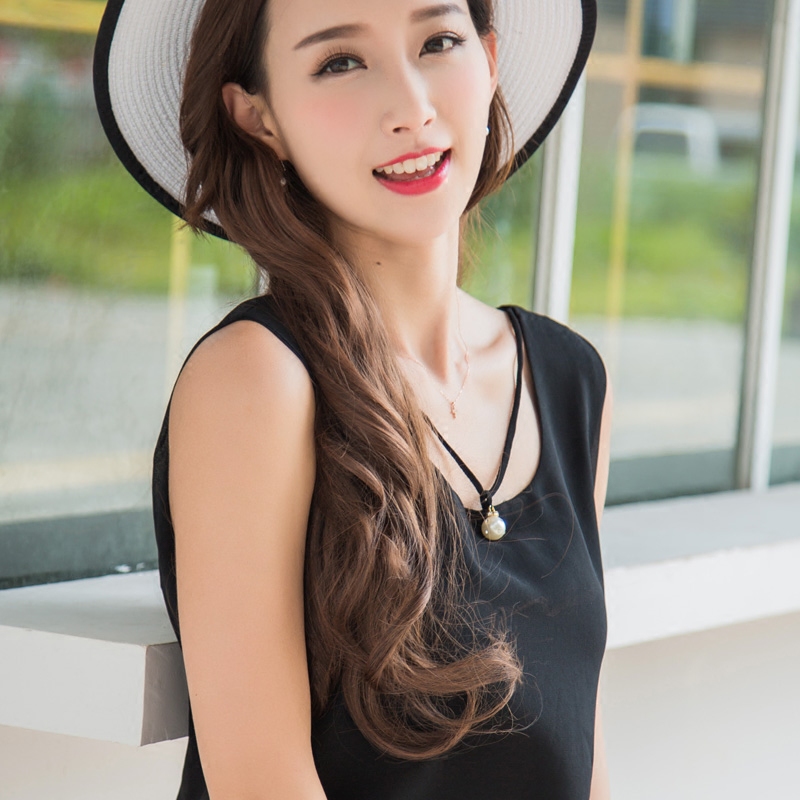秋裝新款打底雪紡背心女吊帶雙層鑲珍珠上衣百搭顯瘦大碼潮