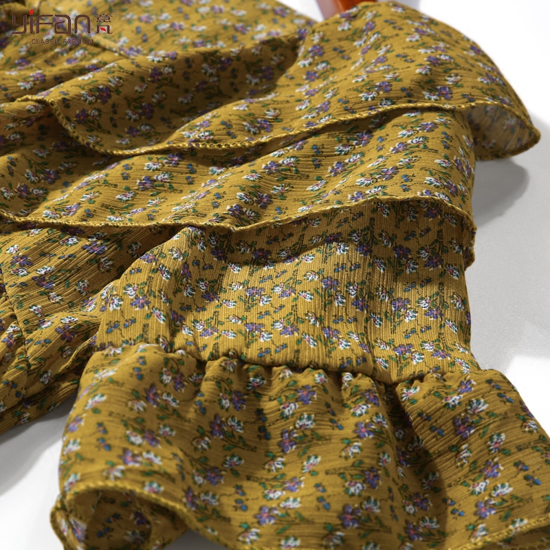 韓國夏季新款甜美一字肩系帶娃娃衫短袖碎花雪紡衫荷葉邊雪紡上衣