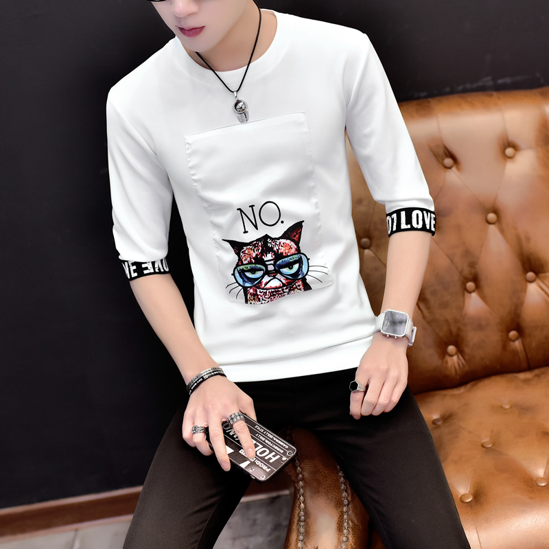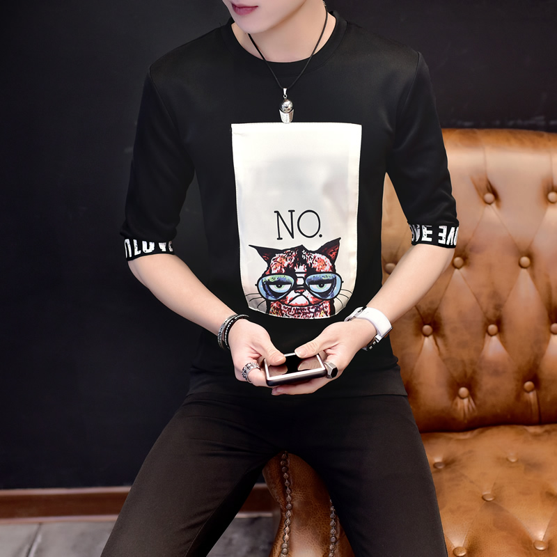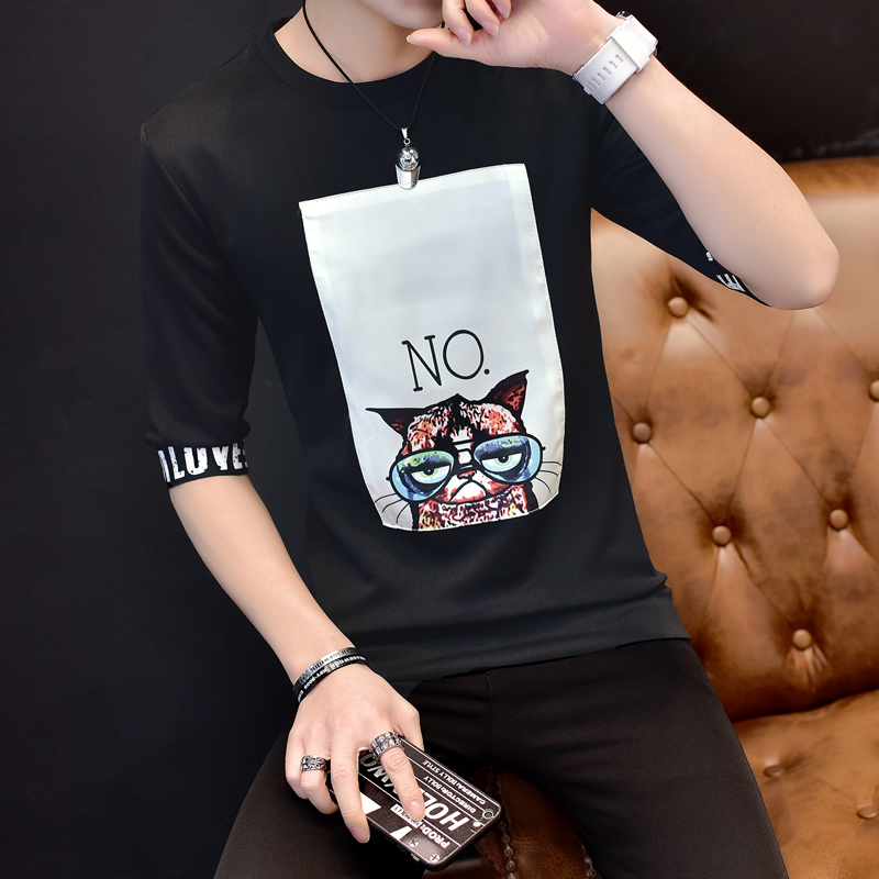 2017夏裝新款休閑韓版個性短袖T恤大碼 半袖打底衫男裝