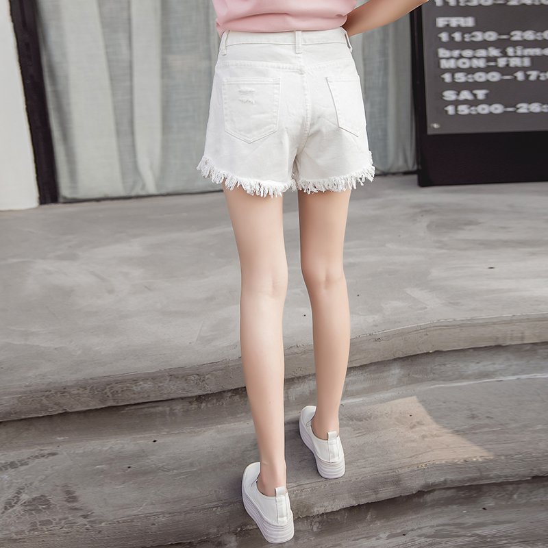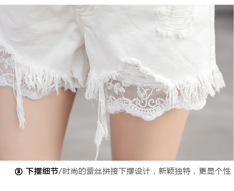 夏季韓版高腰破洞牛仔短褲女闊腿褲大碼蕾絲拼接大碼排扣學生熱褲