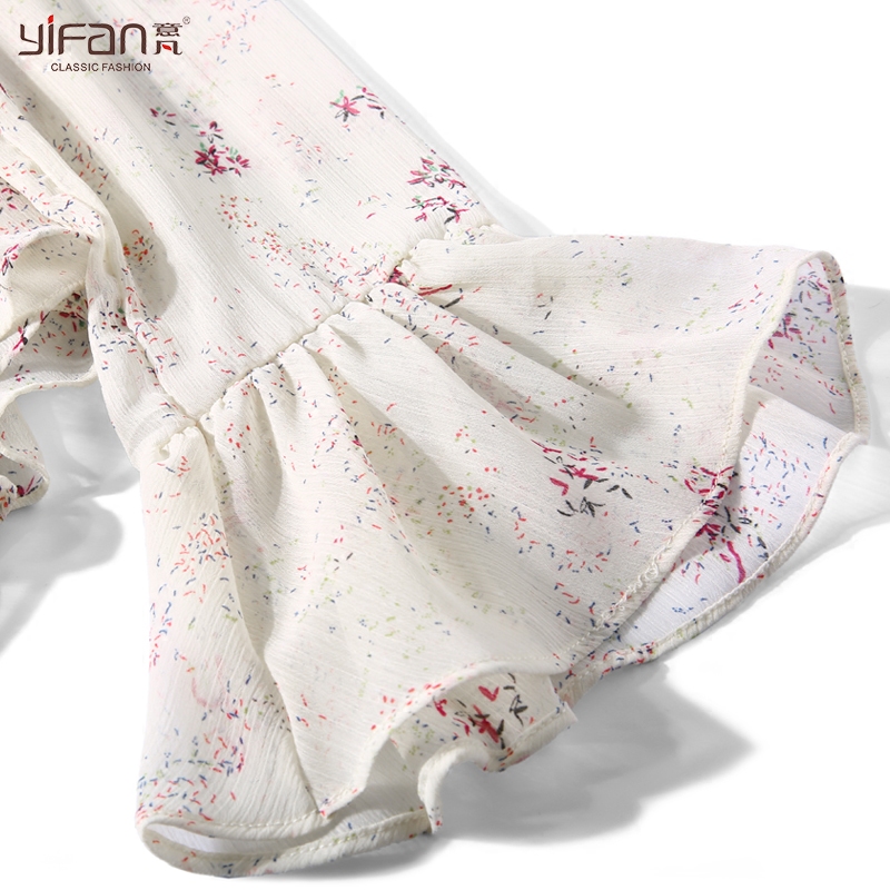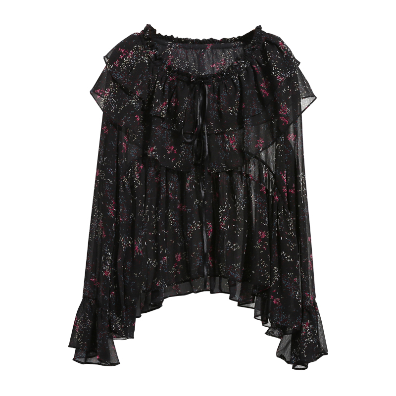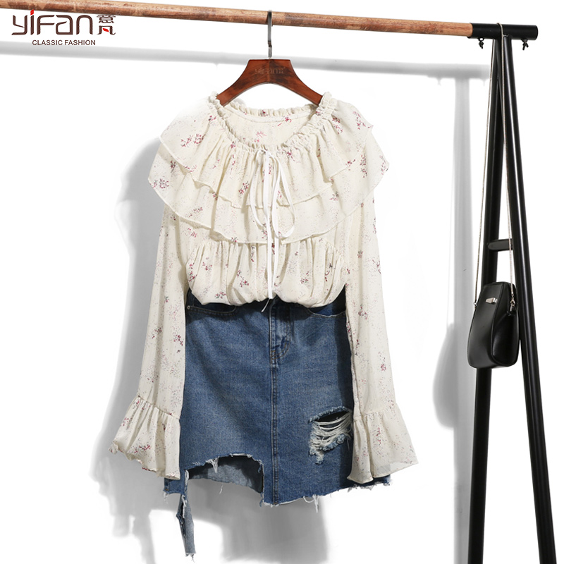 韓國女裝春夏新款甜美少女小清新碎花荷葉領娃娃衫女雪紡衫喇叭袖