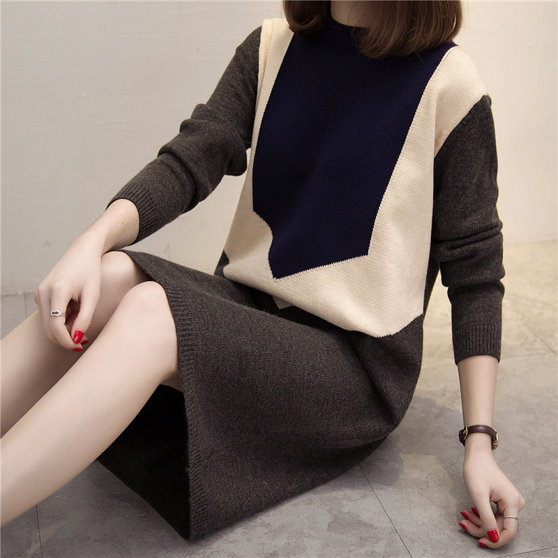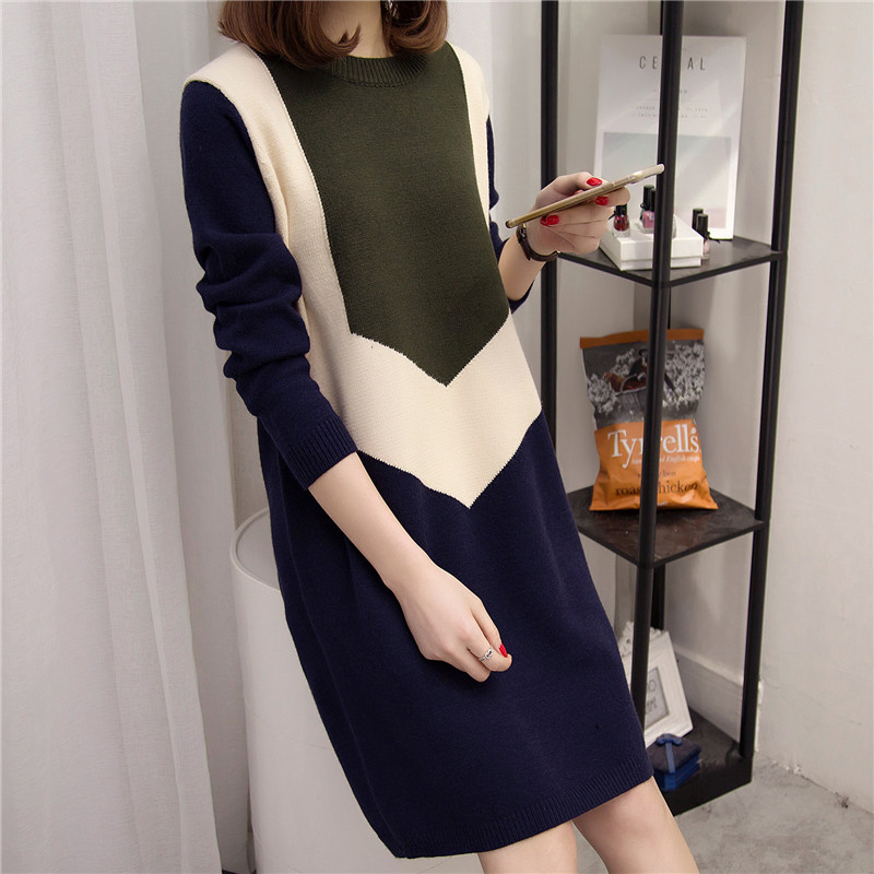 女裝韓版中長款套頭毛衣女秋冬寬松針織衫打底毛衣裙裝新款潮